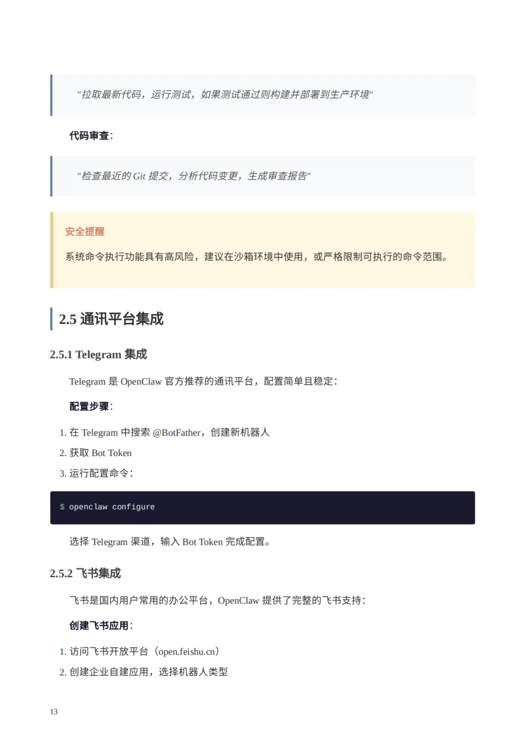 手册第五章“安全与最佳实践”是极为重要且清醒的一章。它毫不避讳地指出了OpenClaw强大能力伴生的高风险: