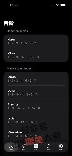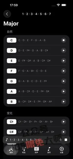 【iHarmony】一款提供1500多种音阶、和弦与和声配置,支持四种记谱法、全文搜索和离线音频播放,无论练耳、作曲、练琴还是学习爵士理论,都能快速查到所需内容,是音乐人随身必备的全能理论工具。