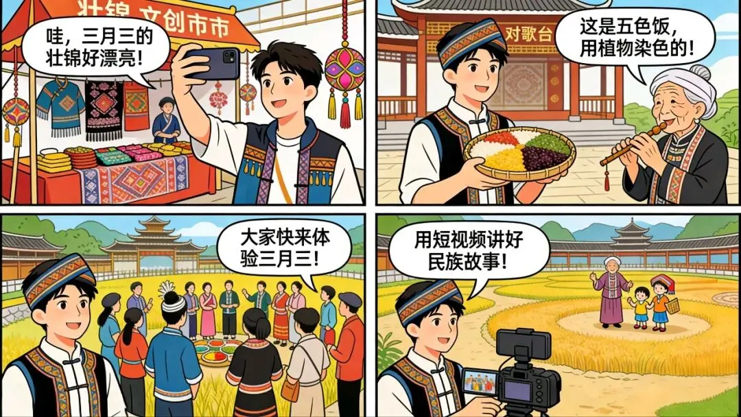 看完这些三月三手绘作品,是不是也被壮乡民俗的魅力暖到了?
