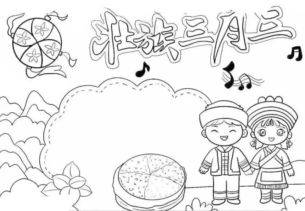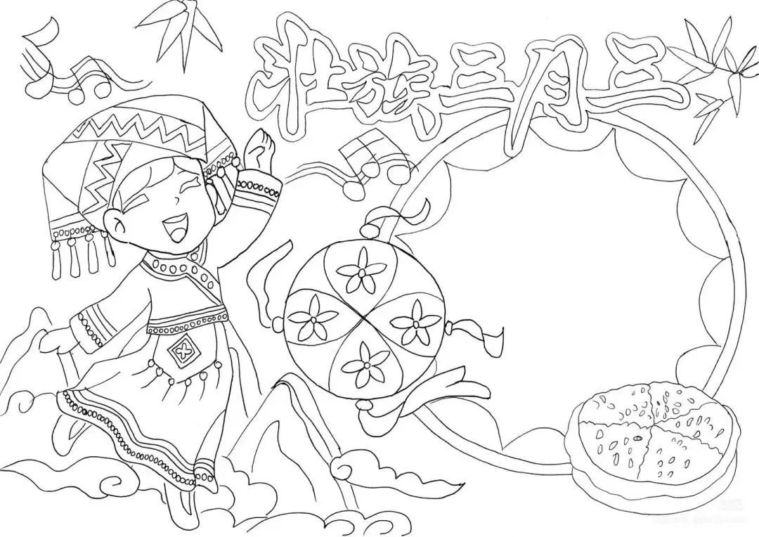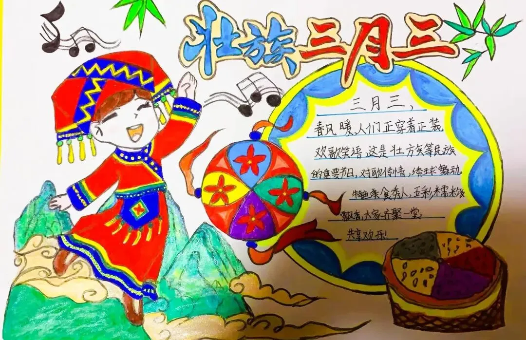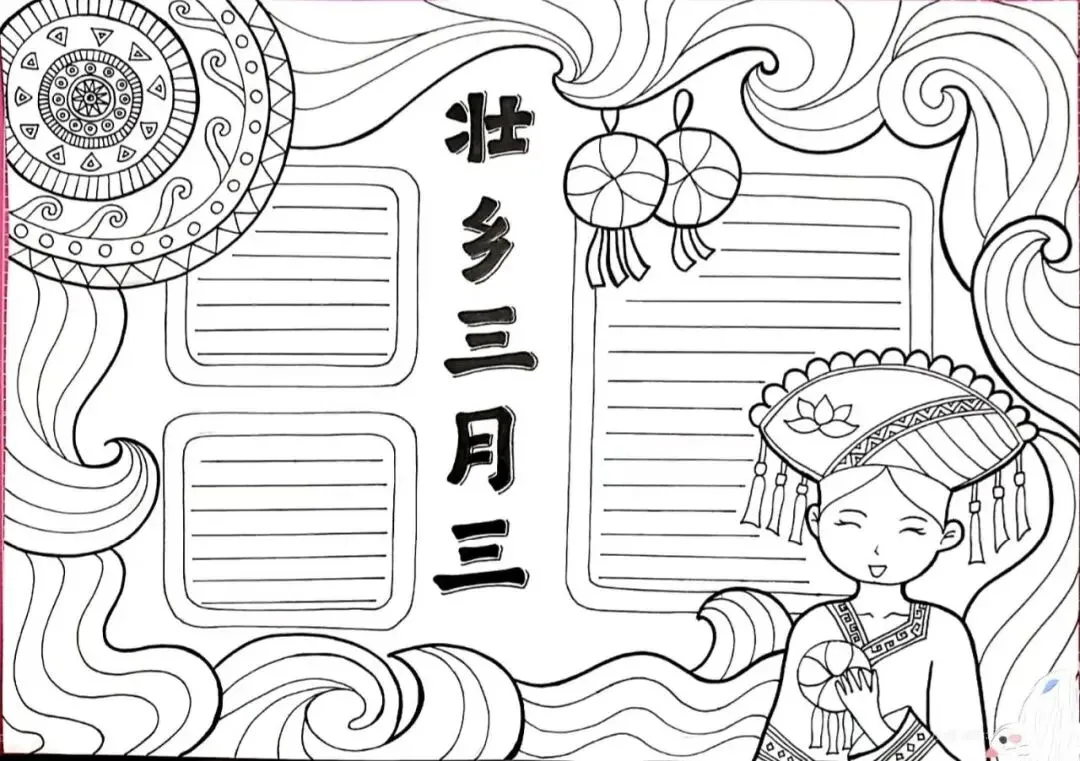 广西三月三主题漫画|手抄报,一笔一画尽是壮乡民族情