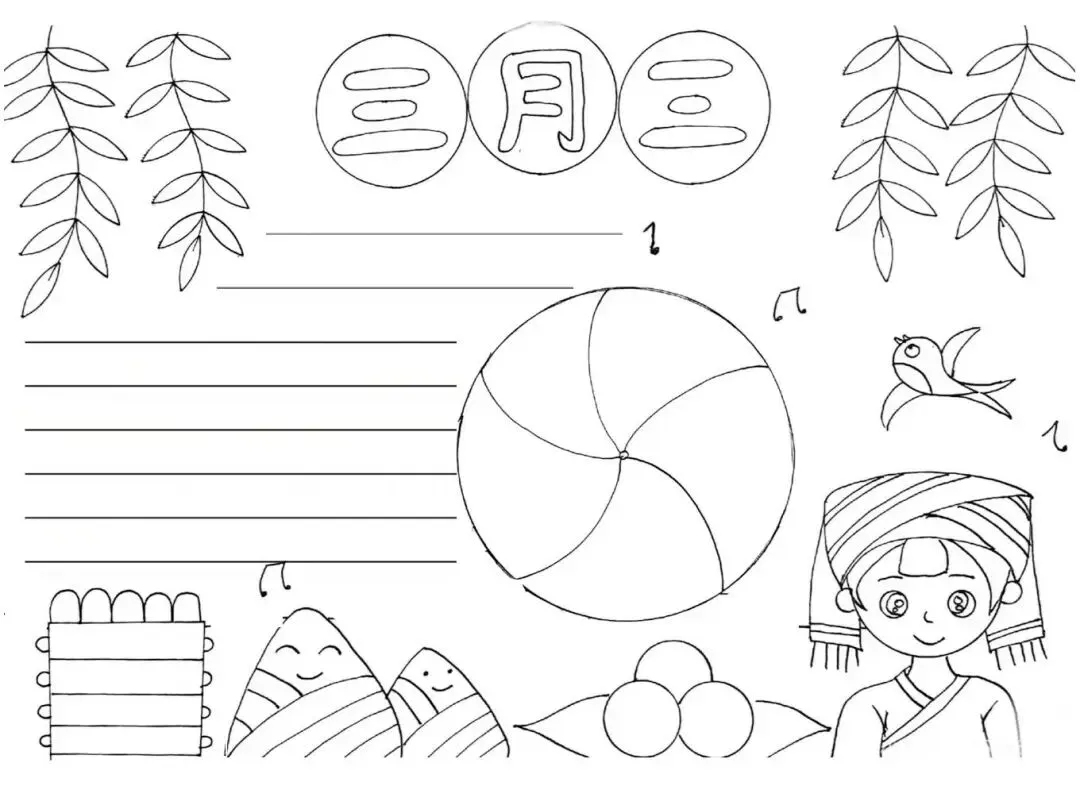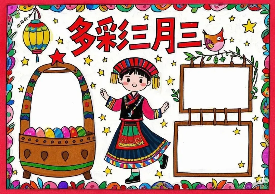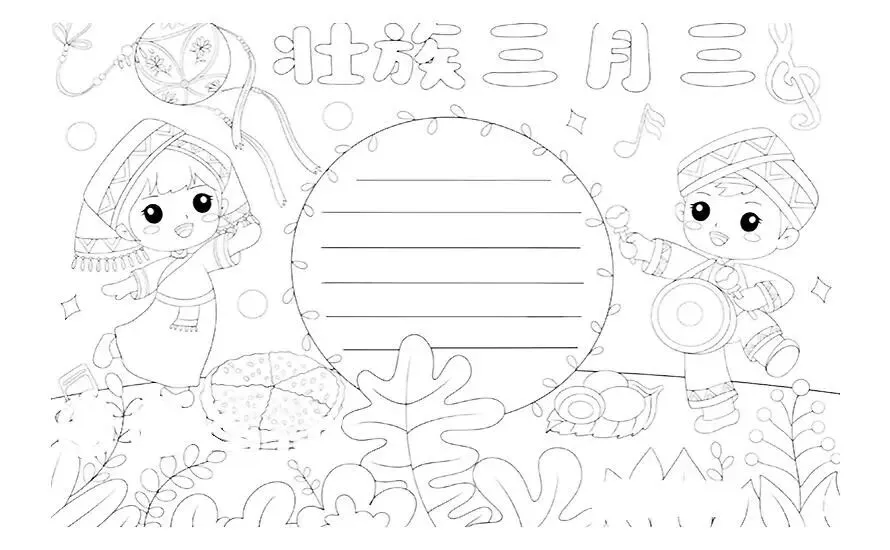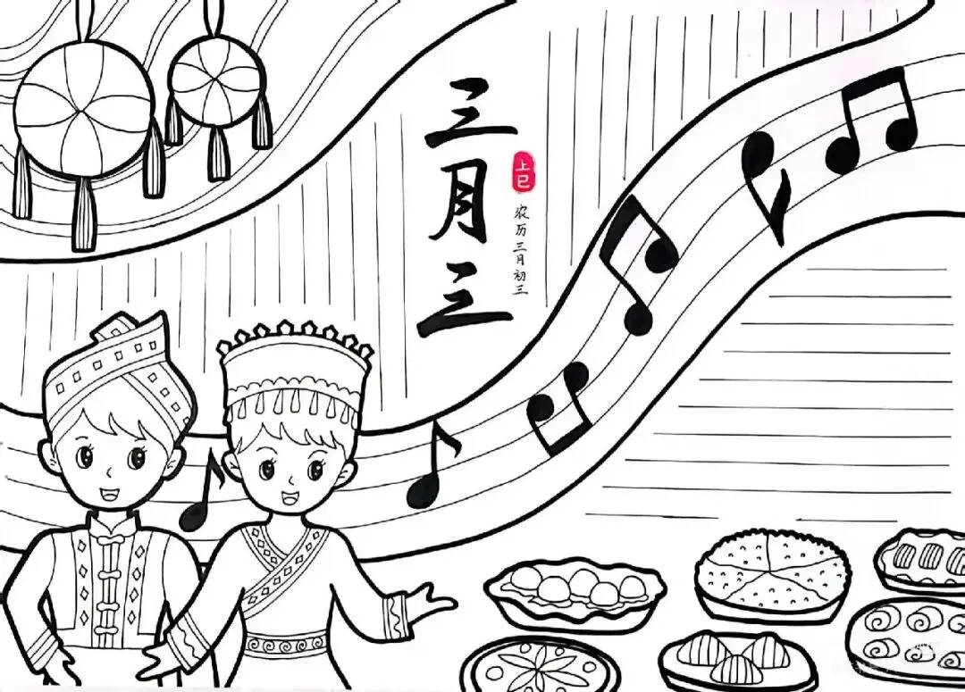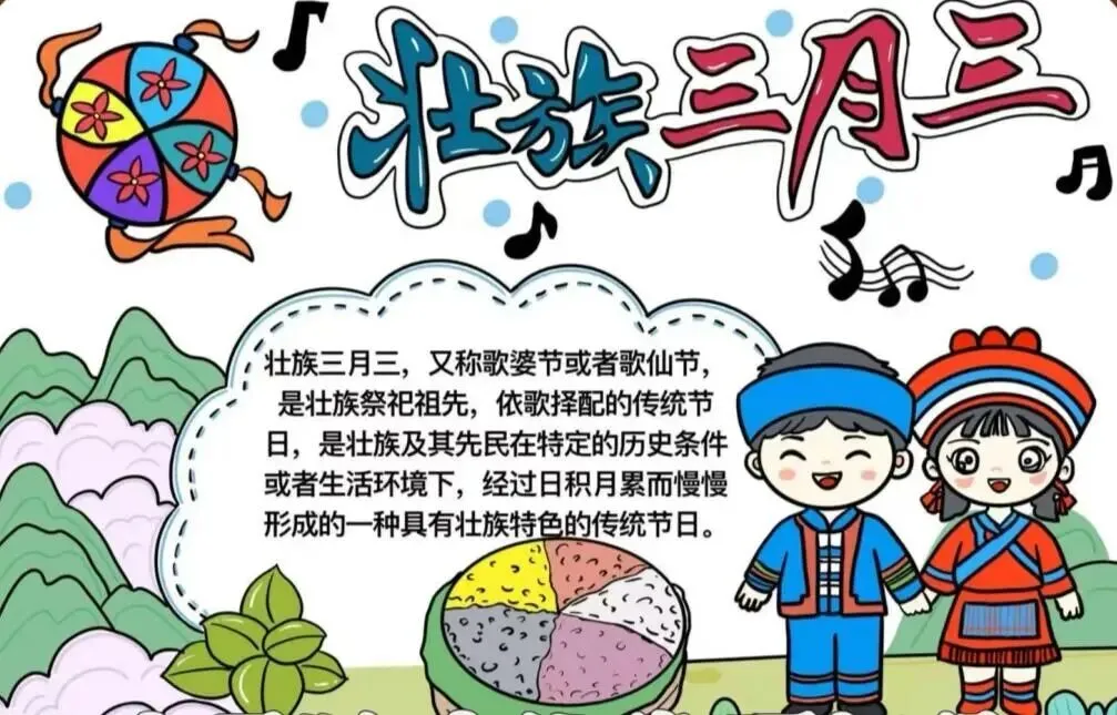 广西三月三主题漫画|手抄报,一笔一画尽是壮乡民族情