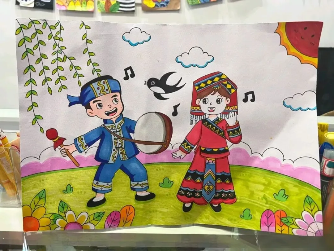 笔墨绘民俗,匠心育新人。愿民族文化扎根心底,家校同心共护少年成长,让民族团结之花永远绽放!