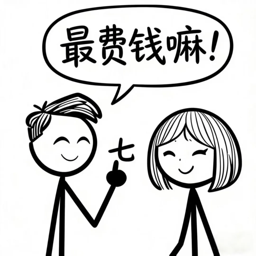 开心漫画;女:亲爱的 我问你1-9之间那个数字最费钱,男:7…娶妻最费钱 女:不对 不对 是3 男:为什么是3啊