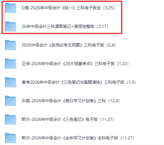 2026年中级会计电子版资料更新(3.25) 微信推送改版啦,为了不错过最新的考试资讯和资料分享,记得把小生设为【星标】呀~ 星标方法很简单:点击上方蓝字【财会小生666】→点击右上角【…】→设为星标 关注下方公众号,防止失联。 2026年东奥会计类网课+题库免费使用! 点击下方↓“阅读原文”↓免费自取!