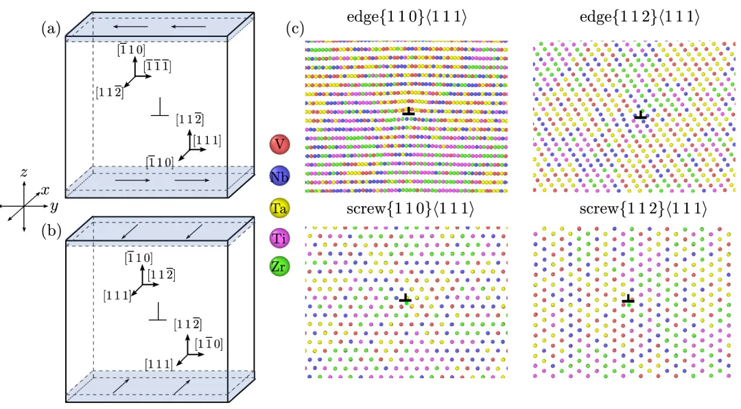 当研究复杂合金时,计算工具往往能够帮助我们从宏观现象进一步走向微观机制。尤其对于高熵合金这类成分复杂、局部原子环境高度不均一的材料体系,仅依赖实验表征往往难以完整揭示其力学响应背后的原子尺度起源。因此,如何建立兼具精度与尺度优势的计算模型,成为理解材料行为的重要前提。高熵合金因其优异的强度、塑性和高温稳定性而受到广泛关注,而 VNbTaTiZr 难熔高熵合金则因其较低密度、较高屈服强度和良好室温延展性,成为一个具有代表性的研究对象。