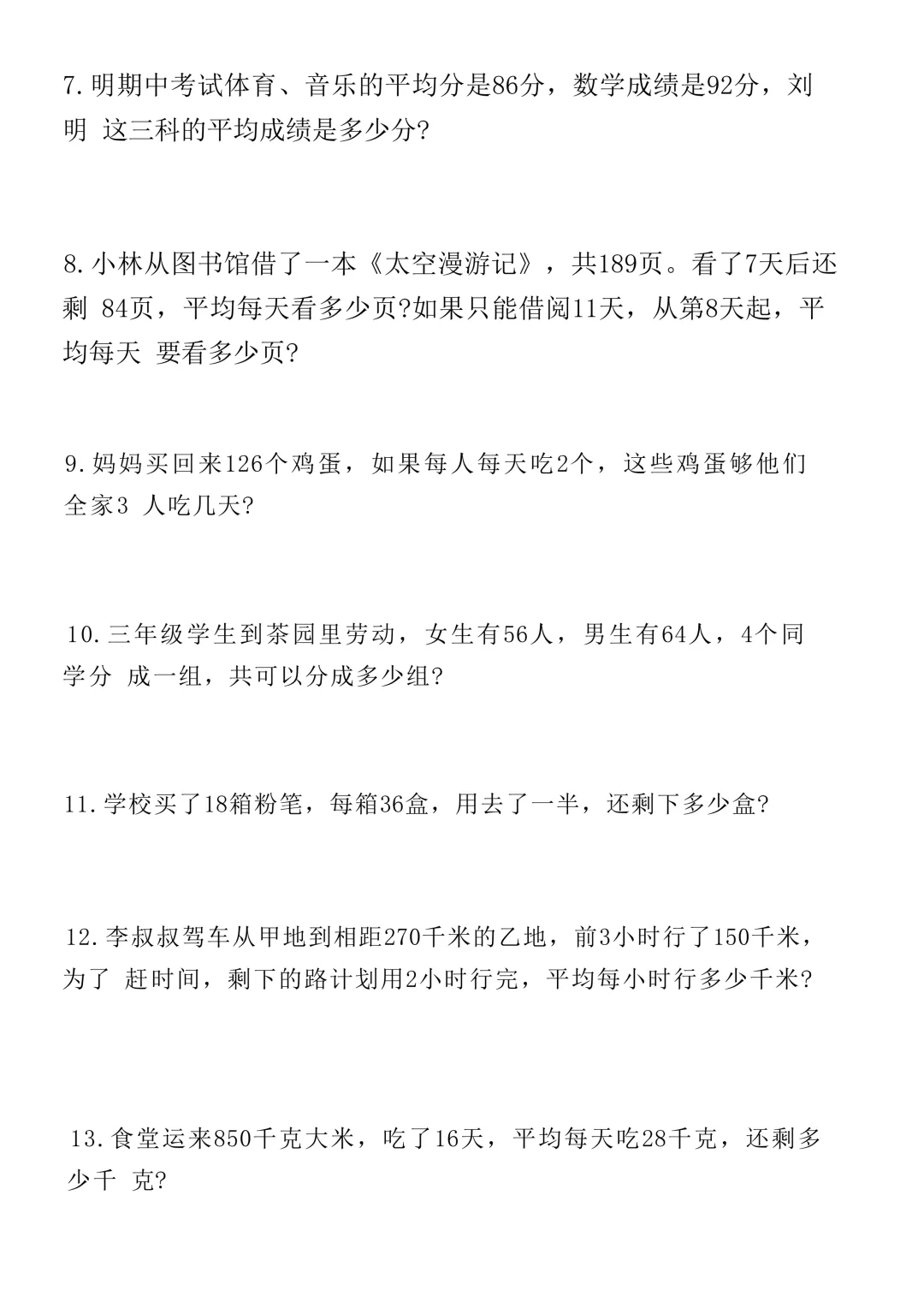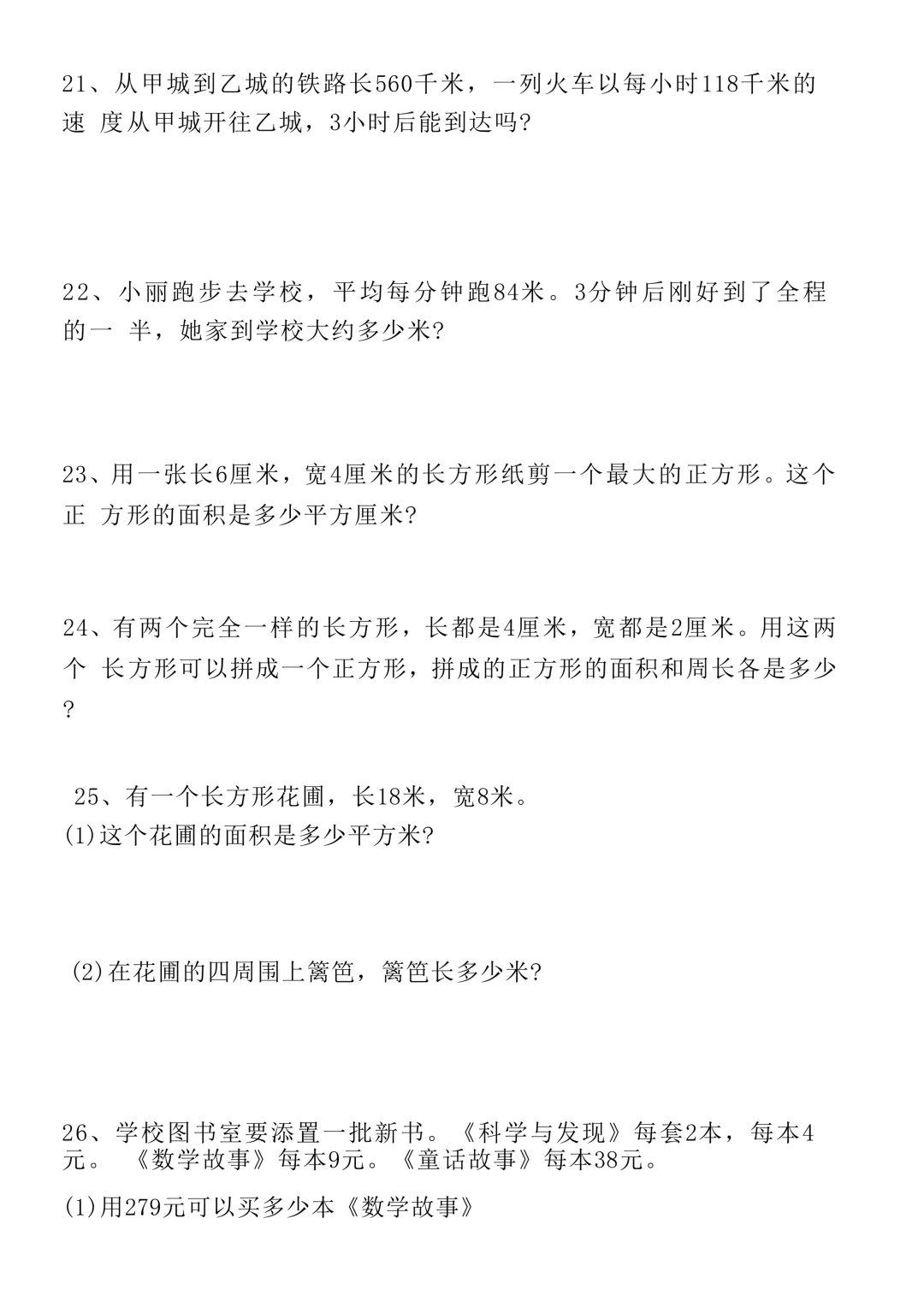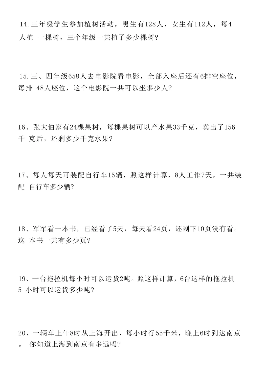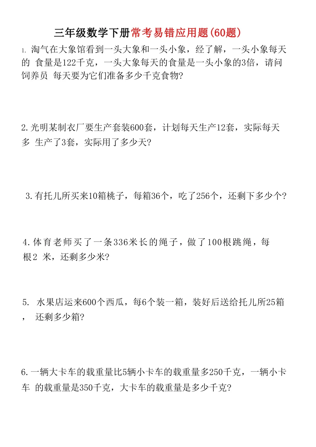 三年级下册数学60道常考易错应用题(电子版可打印)