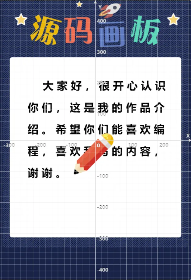 让屏幕上的一支“笔”角色,像写字一样,一个字一个字地把内容显示在画板上,并且每写完一行(10个字),就自动换到下一行继续写。