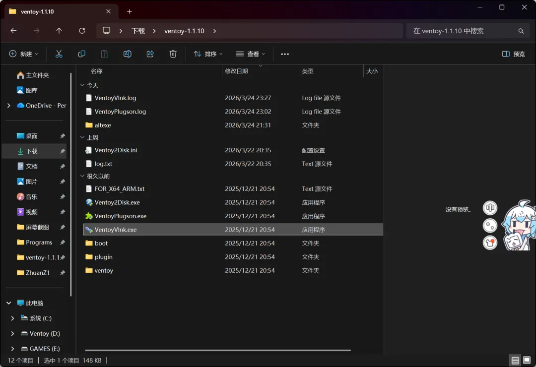 说起来就一句话,怎么创建vlnk呢?我们本期教程以windows的操作为例,一者,目前windows绝大多数人都还在用,二者,会耍linux的大佬看完我的操作,在linux上也就融会贯通了——aur是有ventoy的命令行工具的,很好用。