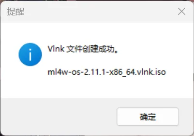 接下来不出意外就会出现一个弹窗,表示我们的vlnk创建操作没有问题,vlnk创建成功了。