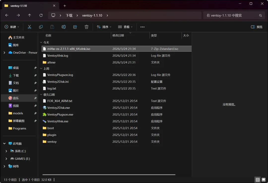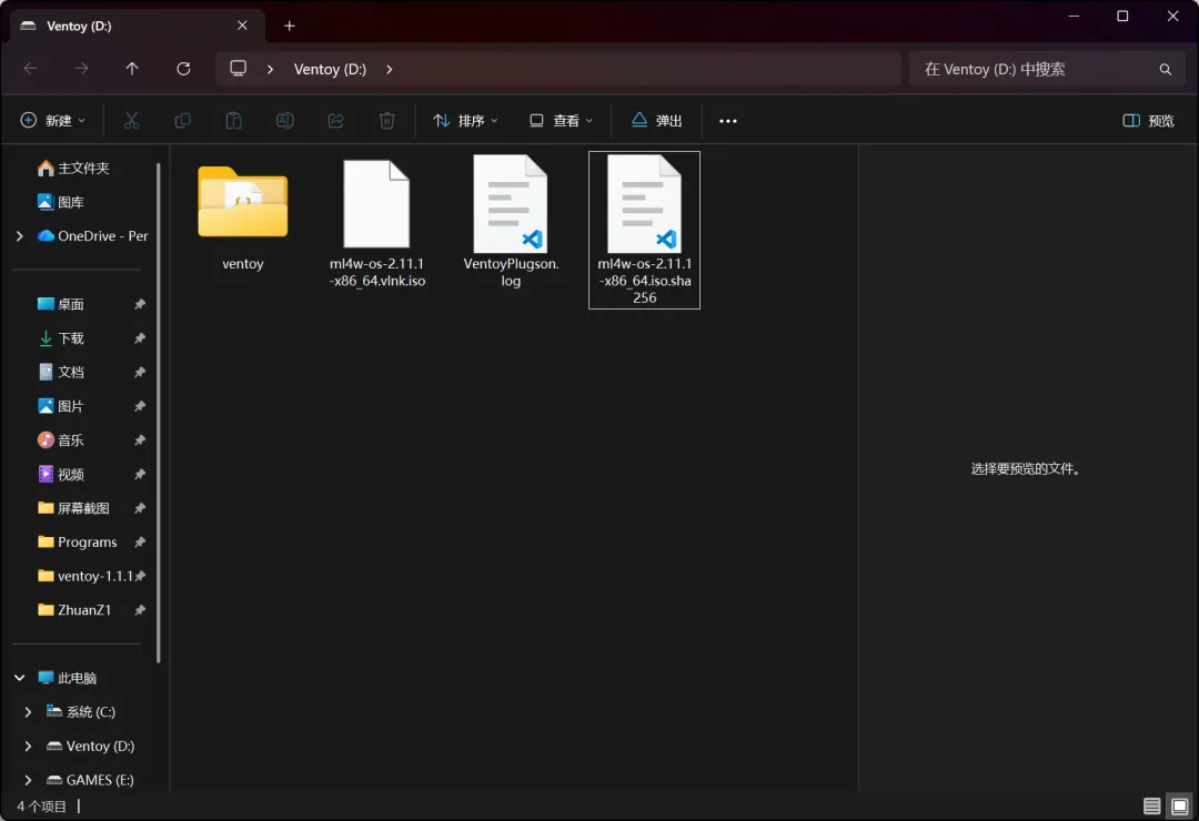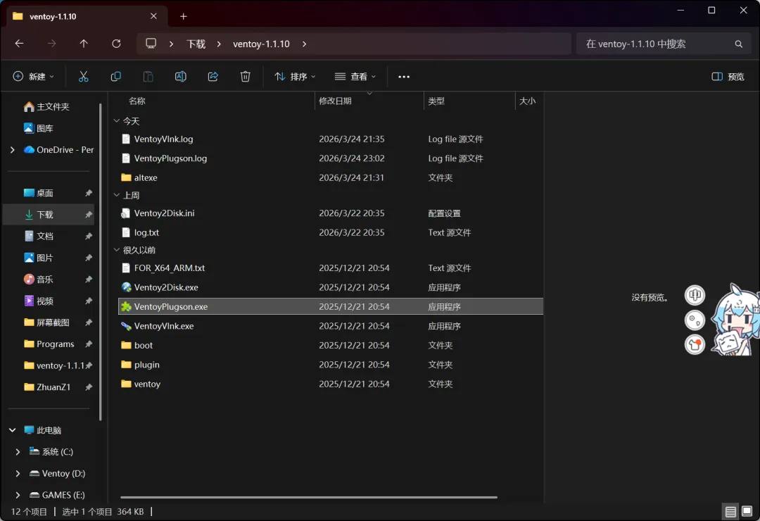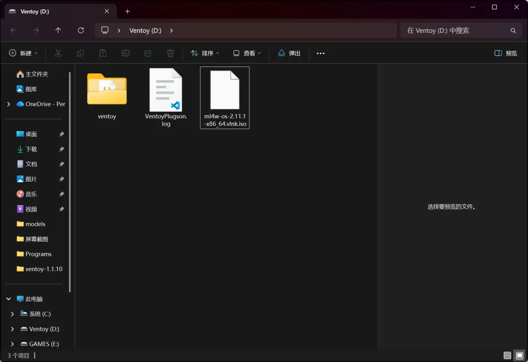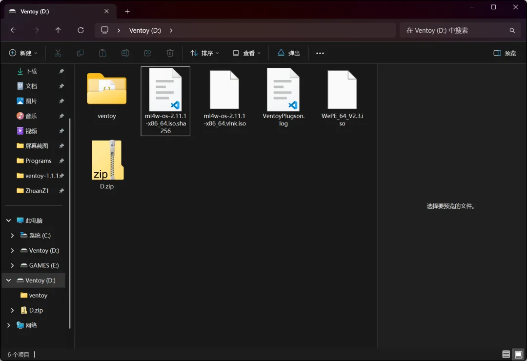 确认无误后,我们就可以插入ventoy u盘,将vlnk文件放入ventoy分区了。