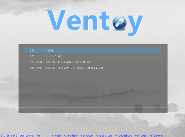 不出意外,ventoy的列表里就会出现我们刚刚创建的vlnk文件了。使用效果如下方gif所示,这里我就用ventoy官网的gif了,因为比较清楚。