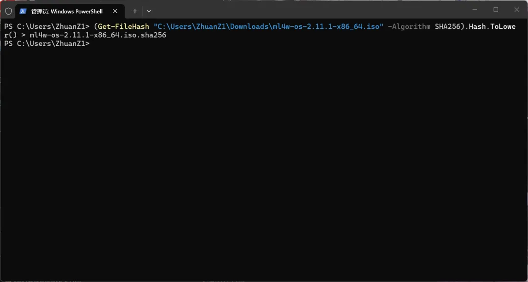(Get-FileHash "此处替换成你本地镜像文件的完整路径" -Algorithm SHA256).Hash.ToLower() > "此处替换成你镜像文件的全名,带后缀".sha256