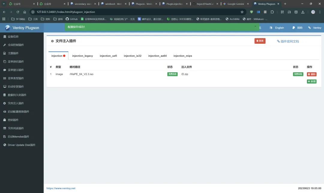 这时候我们就可以使用ventoy的文件注入功能来快速地实现文件注入。在新版的ventoy中,这个操作是比较简单的。