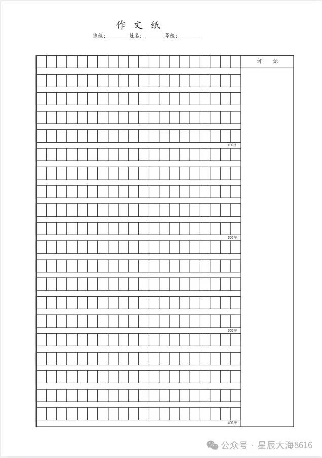 学生Word/PDF版作文稿纸+各种线格+各种方格免费下载(A4打印版)