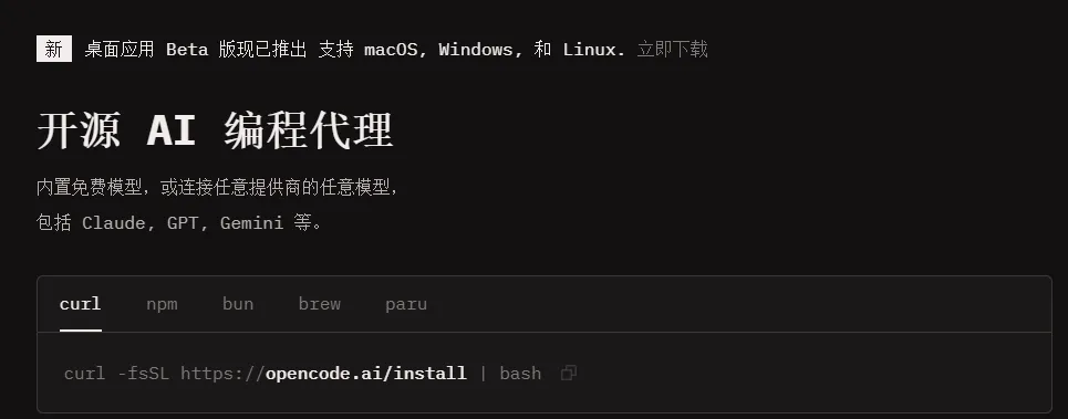 推荐一款免费的AI编程工具OpenCode