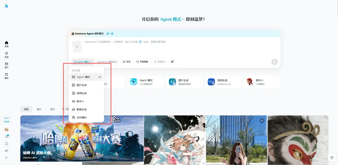 首先给大家推荐的是字节跳动推出的Seedance 2.0,这个目前来说综合实力是比较强的,能做视频,也能做图片,可选的模式也很多,大家比较热议的数字人模型也是比较厉害的。