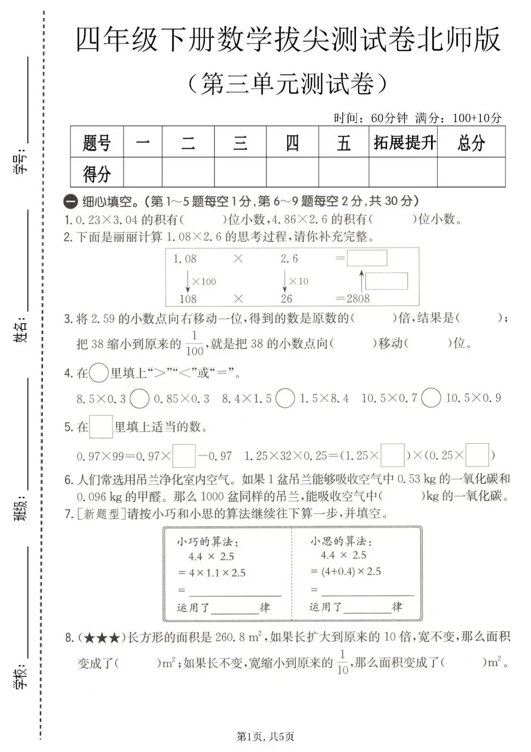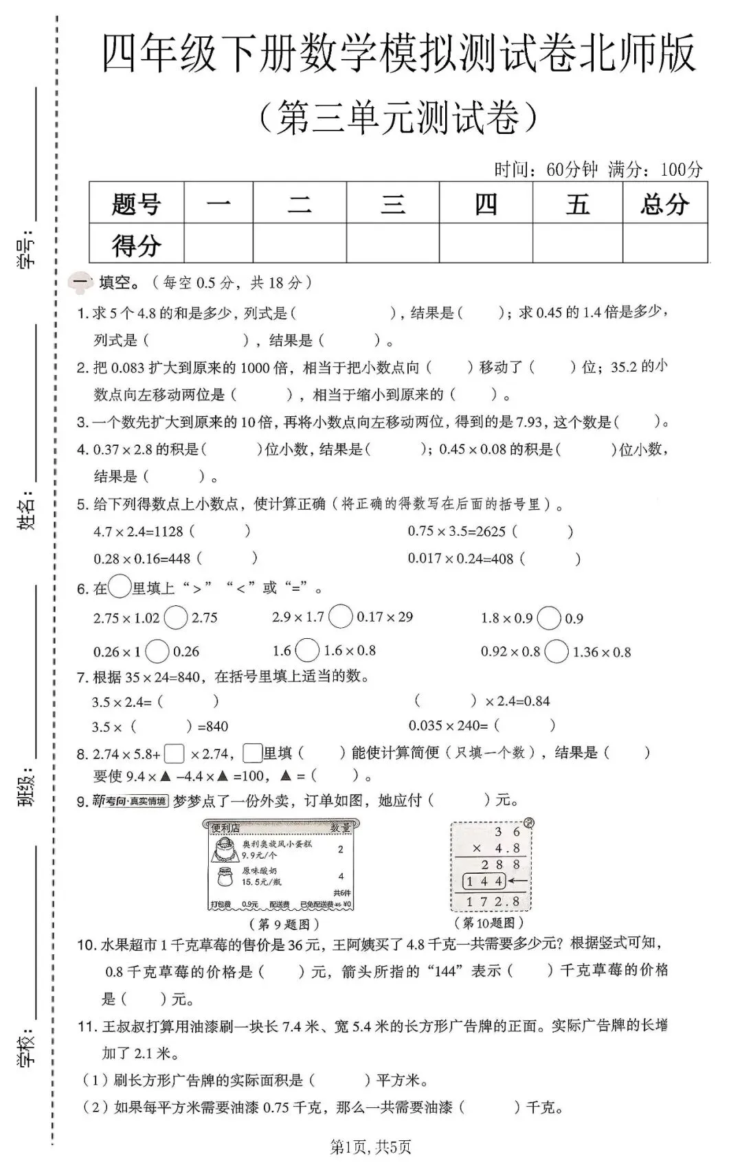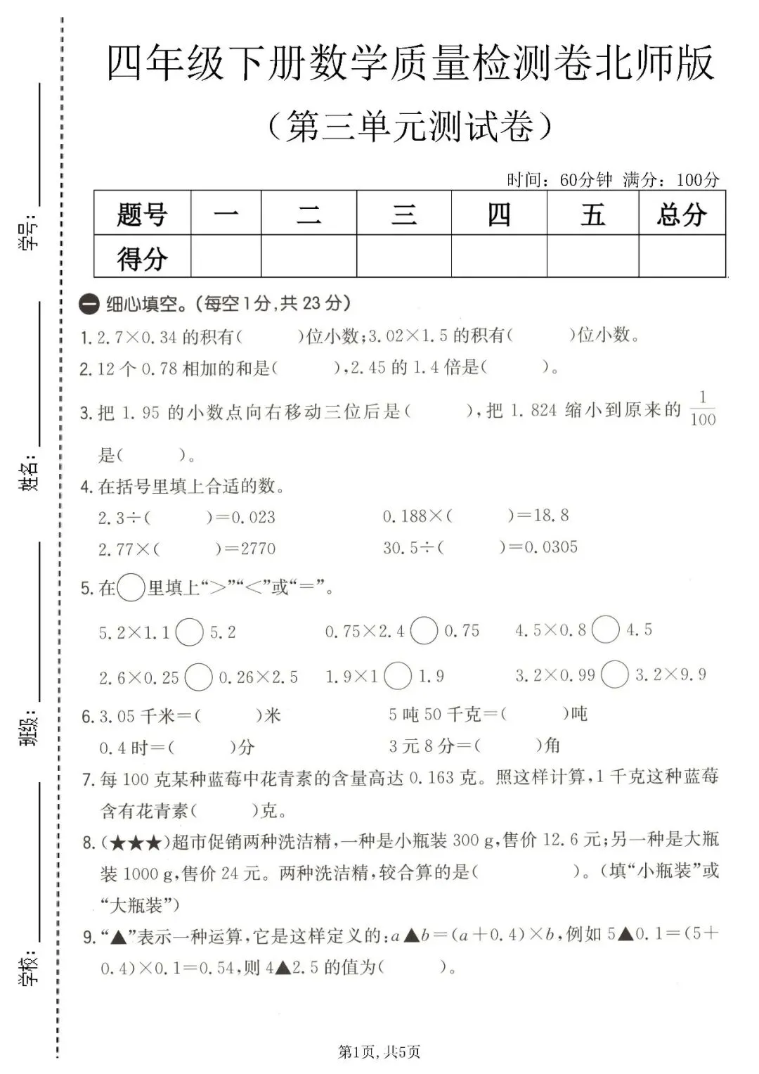 今天分享的是:四年级下册数学北师版第三单元质量检测卷。这套资料包含了计算题、填空题、应用题等基础题型,整体难度不大,适合做查漏补缺使用,A4排版也非常方便家用打印机打印,是非常不错的单元综合测试卷!