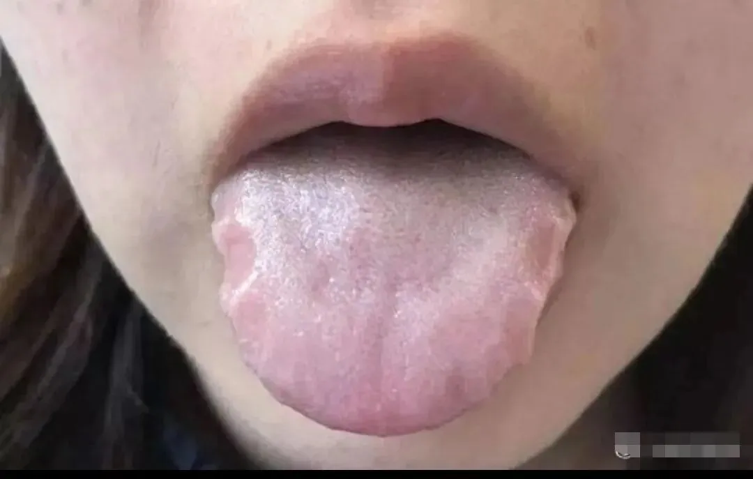 👅而最直观的表现,就是舌头胖大,边缘有齿痕,舌苔铺满整个舌头,上面还湿漉漉的,全是唾液,一看就是典型的气虚舌象。