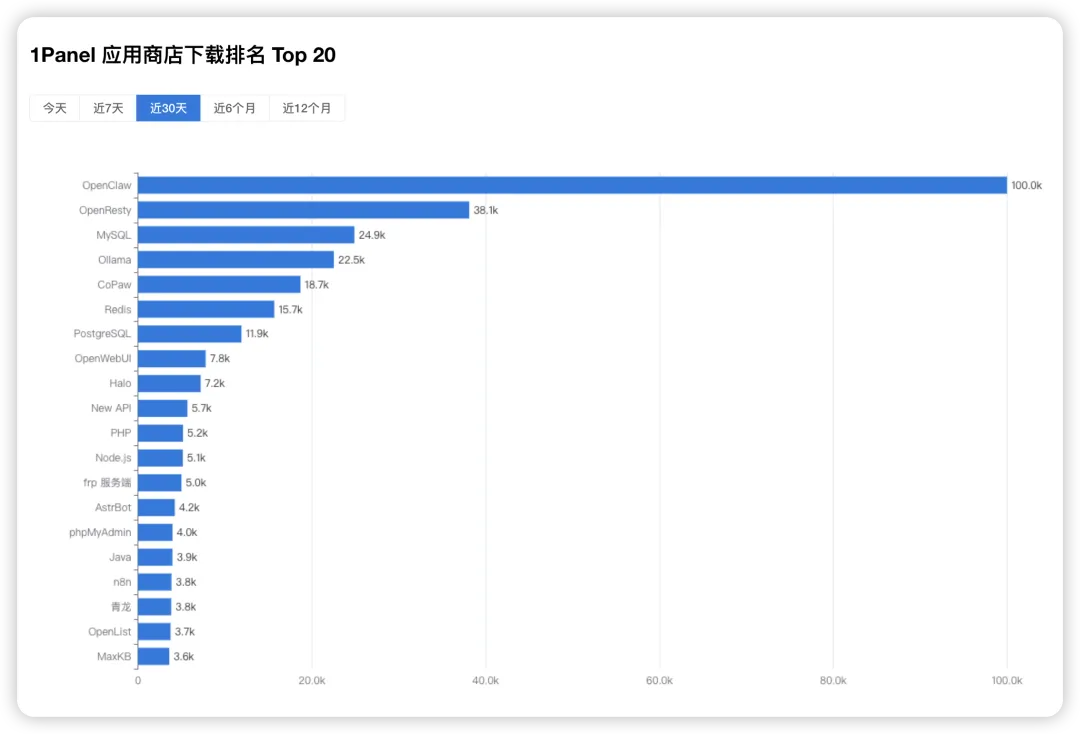 新起点丨1Panel应用商店OpenClaw近30天下载量突破10万次