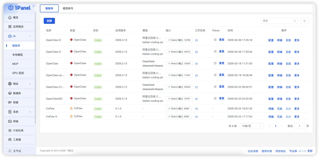 ▲图2 1Panel智能体管理界面