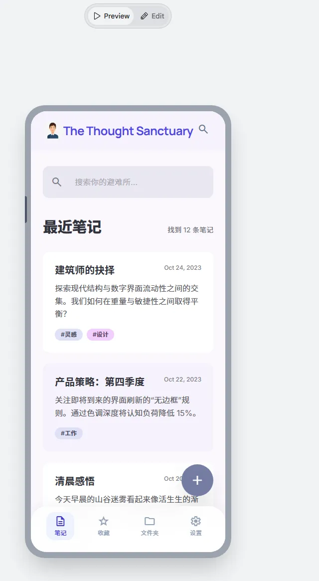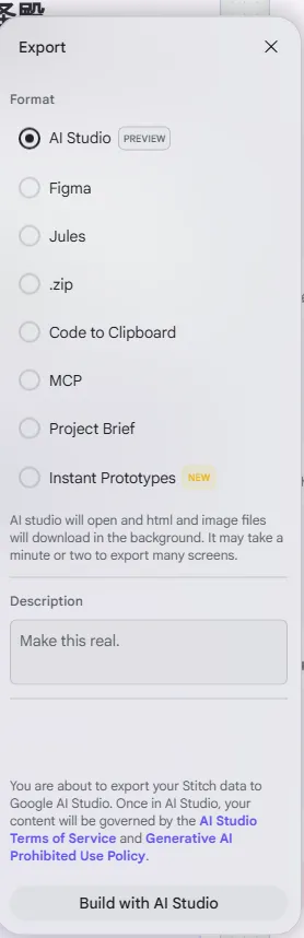 现在的 Stitch 完全支持语音输入,你甚至不需要打字,只要说一句:“帮我做一个笔记应用 App。”