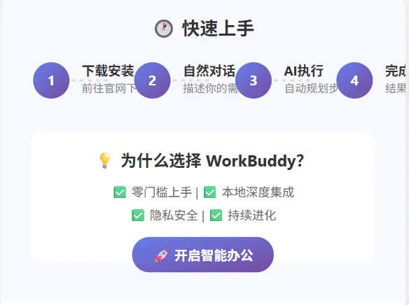 无论是处理文档、编写代码、分析数据,还是自动化办公流程,WorkBuddy 都能通过自然语言指令驱动,让繁琐的工作变得简单高效。