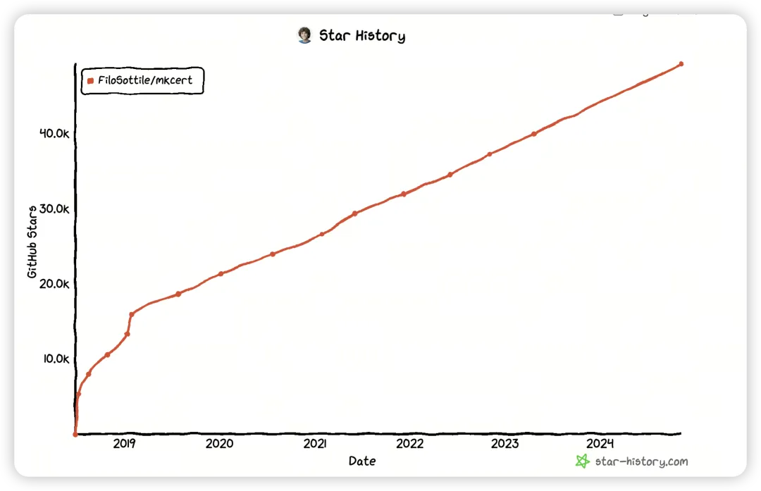凭借简洁和高效,mkcert在GitHub上已经获得了49K+的Star,成为广受开发者喜爱的本地SSL工具。无论你是Web开发新手,还是资深后端工程师,mkcert都能让你事半功倍,轻松应对HTTPS的开发需求。