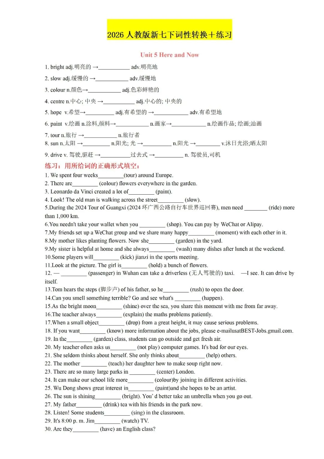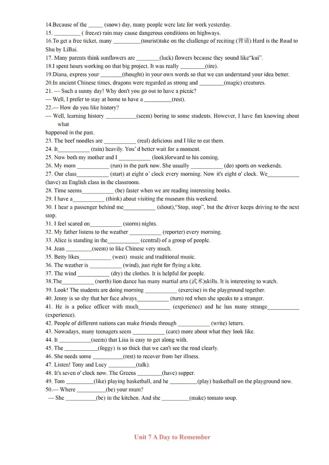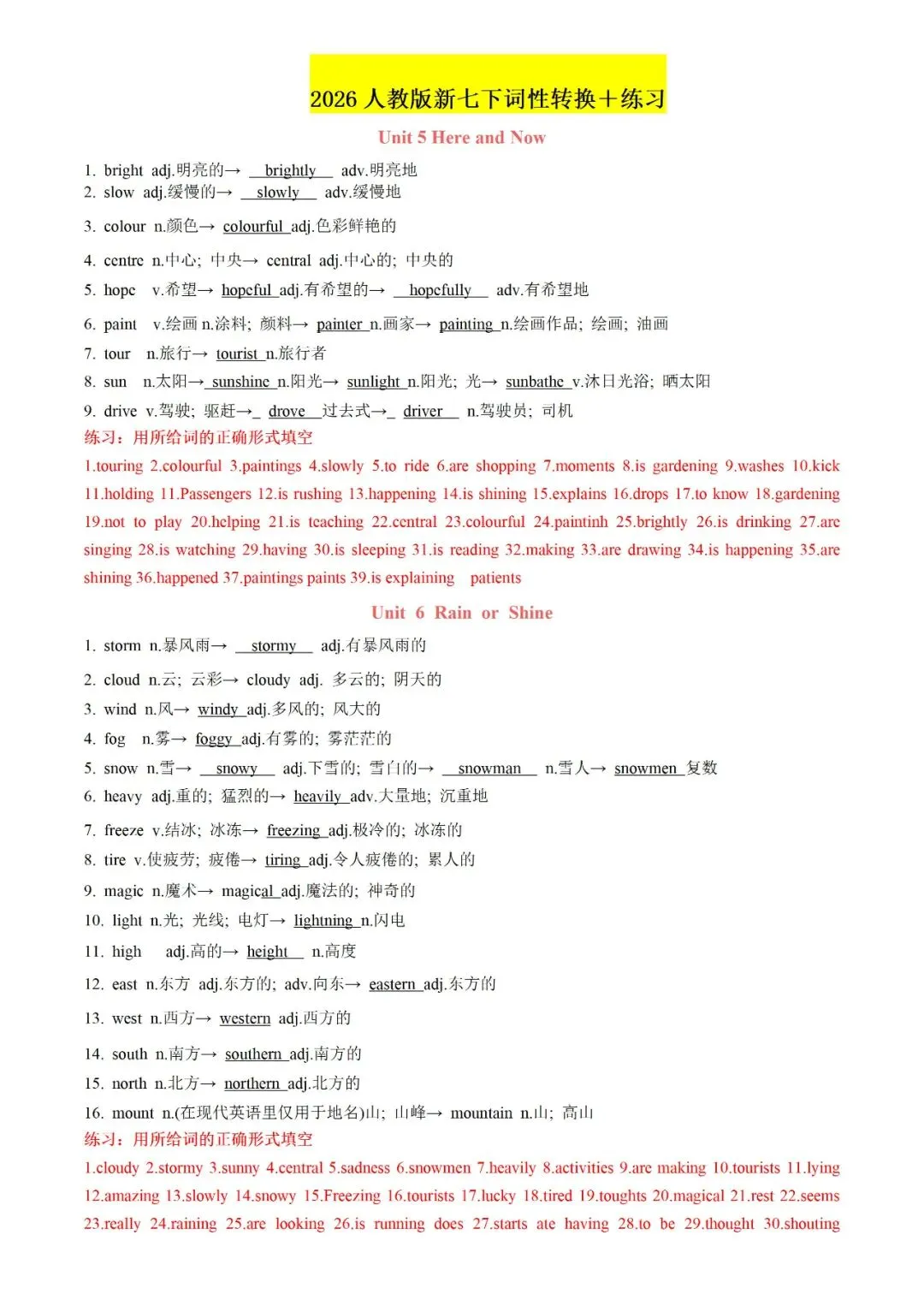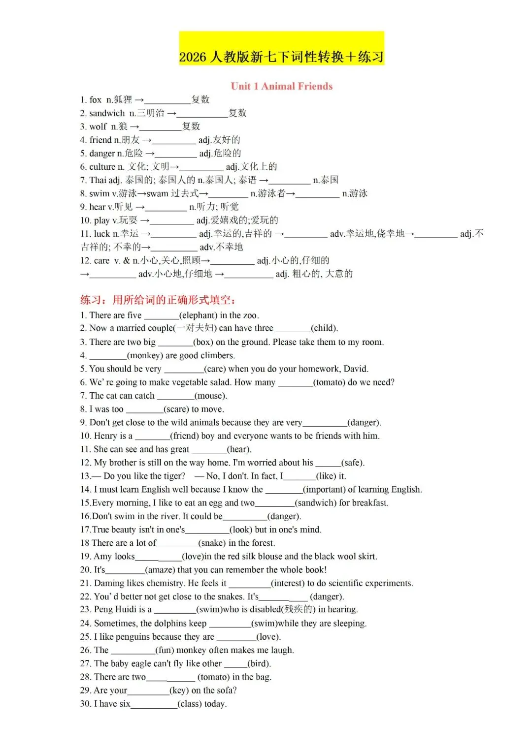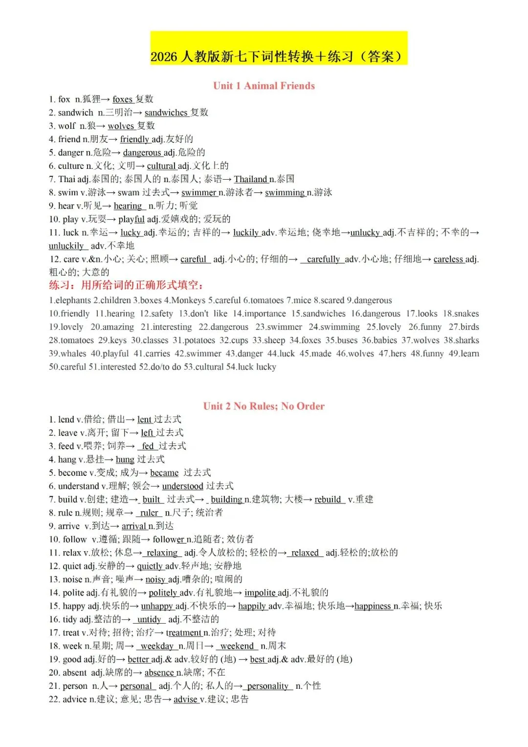今日老师为大家整理了:七年级下册英语U1-U4背诵版+答案电子版可打印