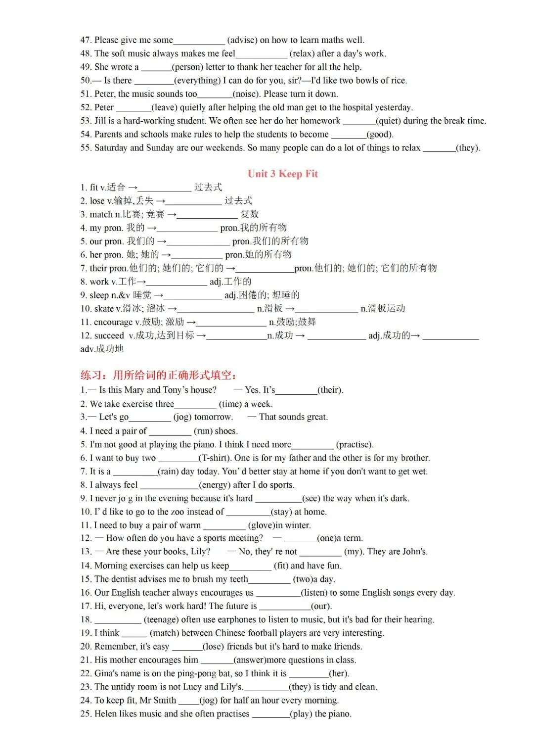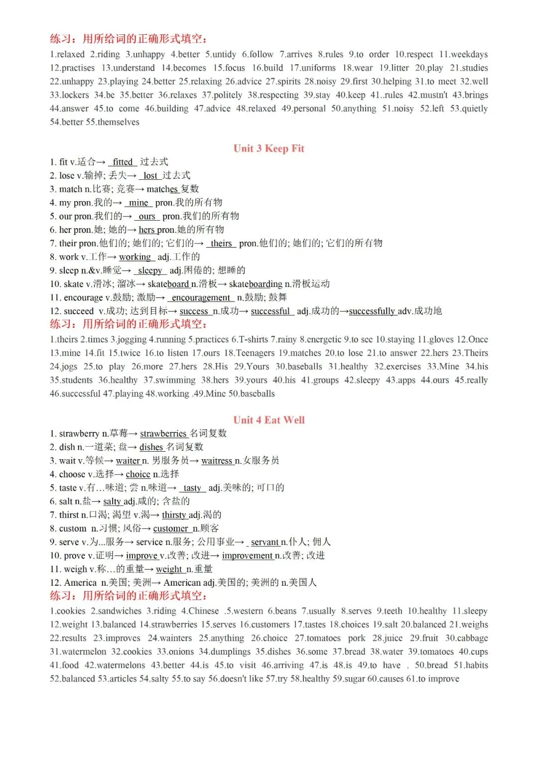 七年级下册英语U1-U4背诵版+答案电子版可打印