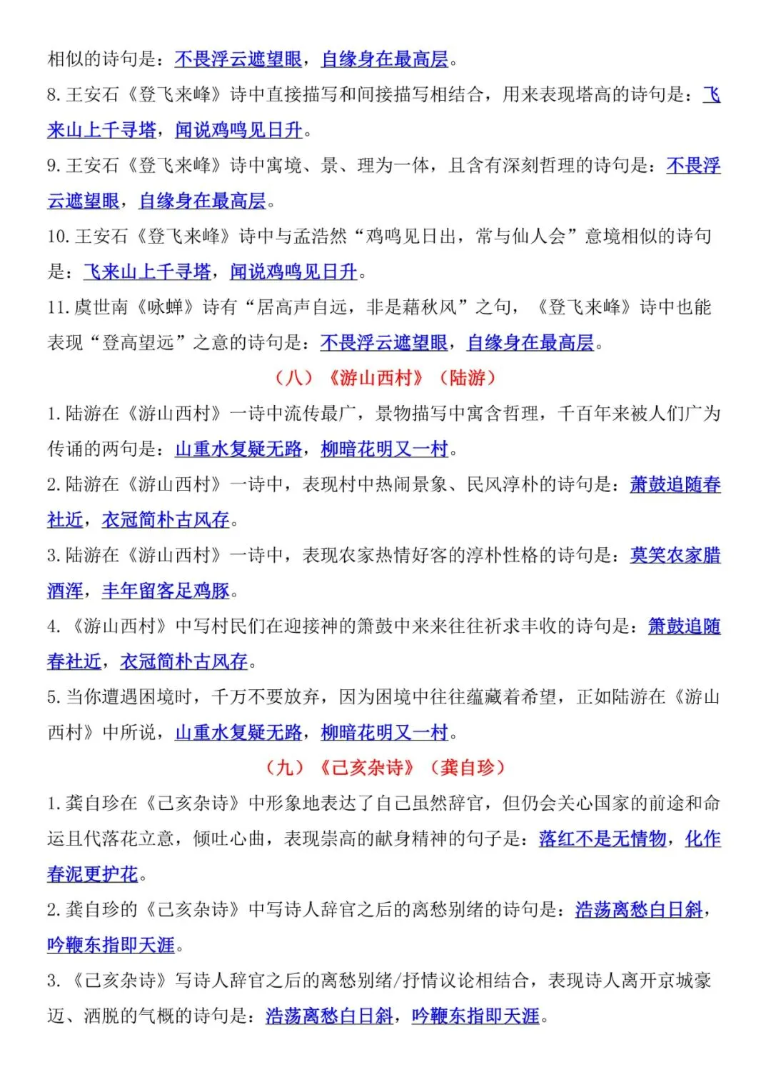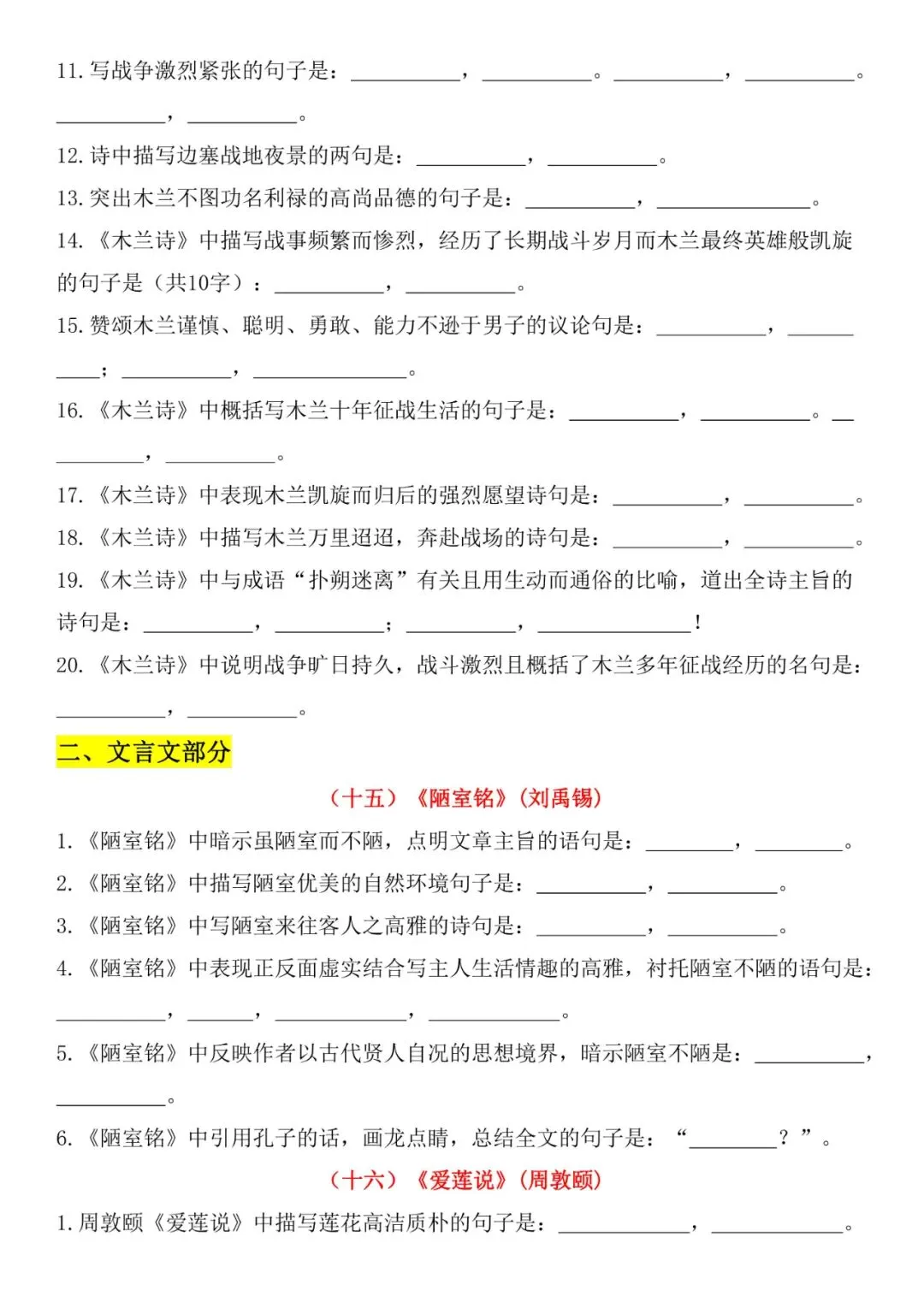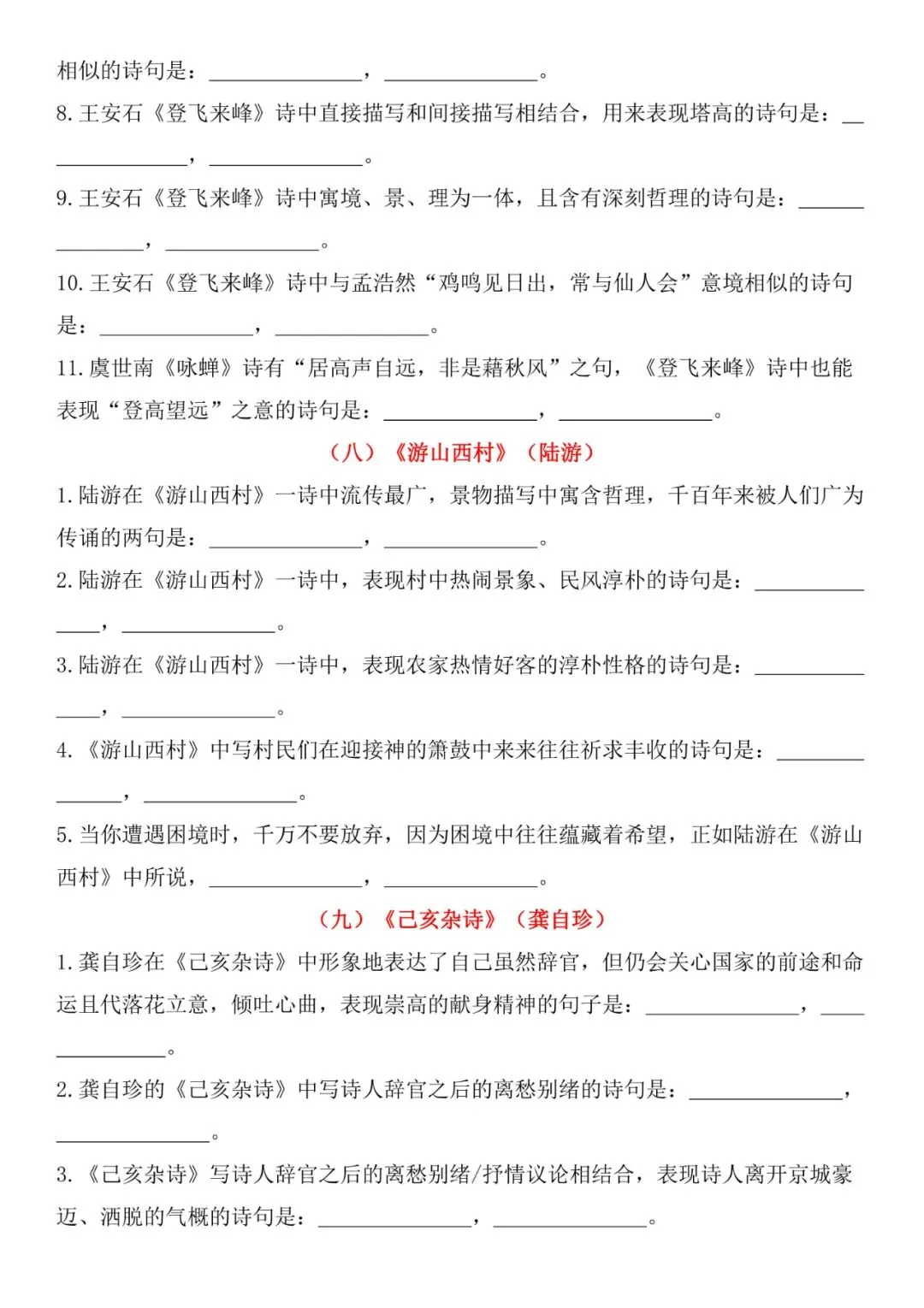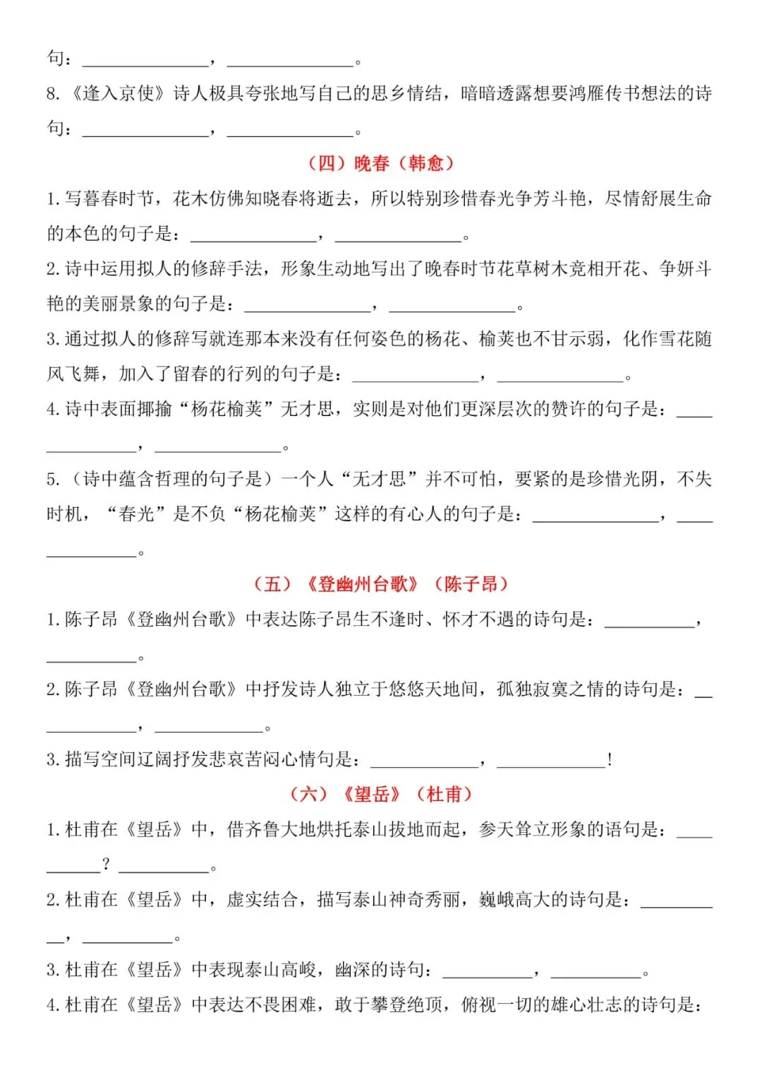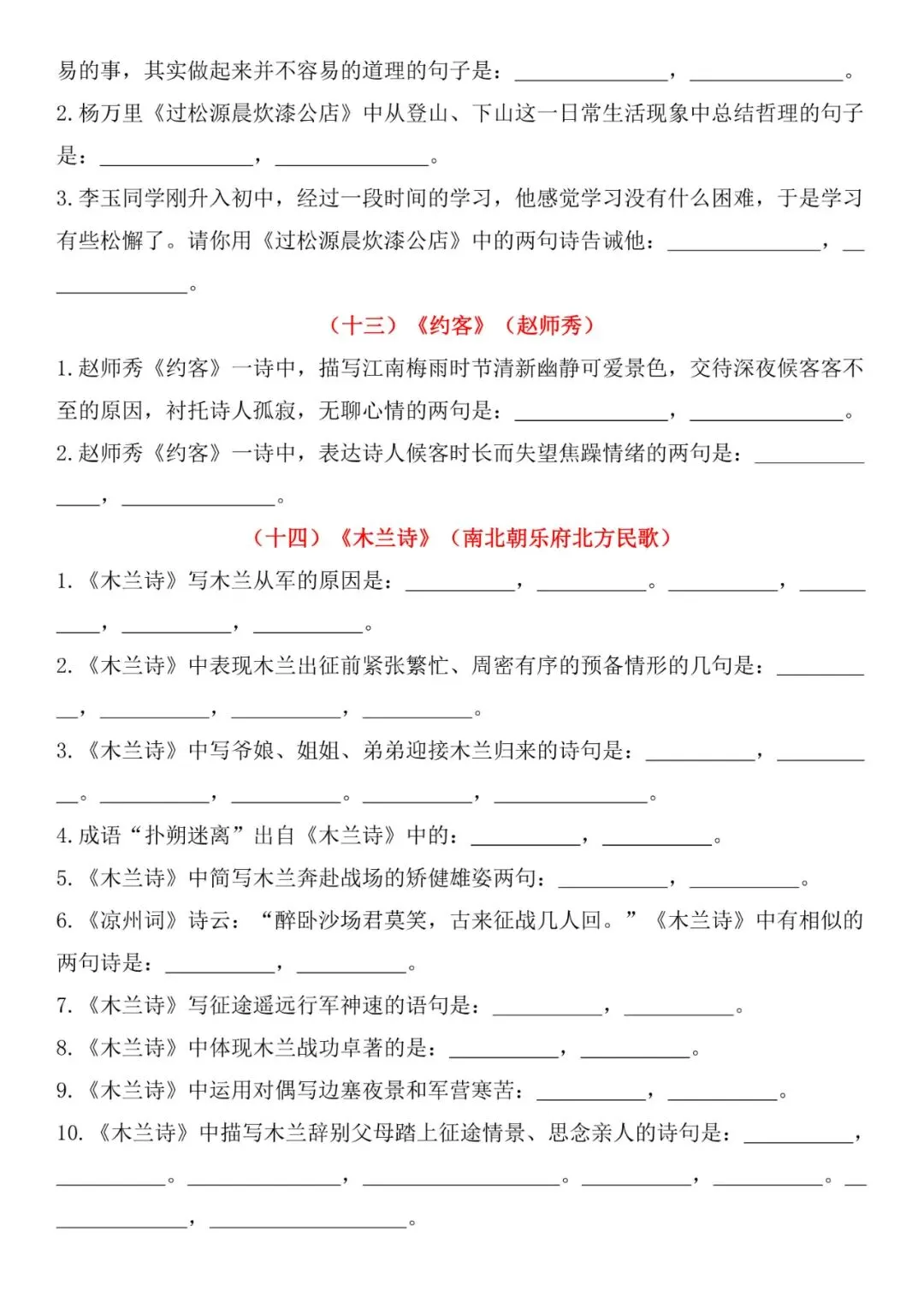今日老师为大家整理了:七年级下册语文古诗文理解性默写专项电子版可打印