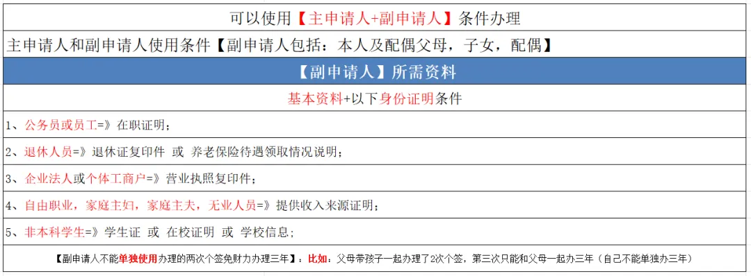 【副申请人】只是不需要财力证明,除基本资料外需要按以下提供: