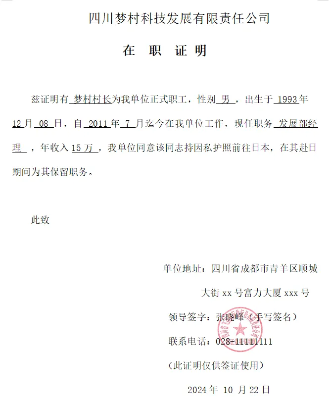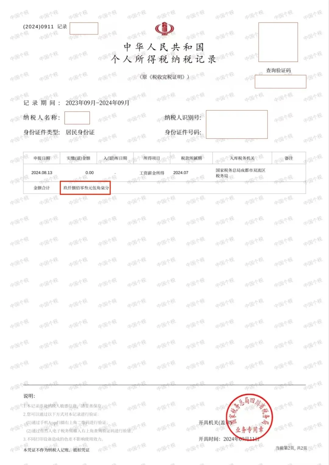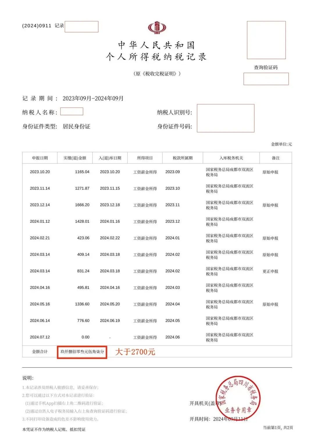 【日本旅游签证】在职工资年纳税2700简化资料: