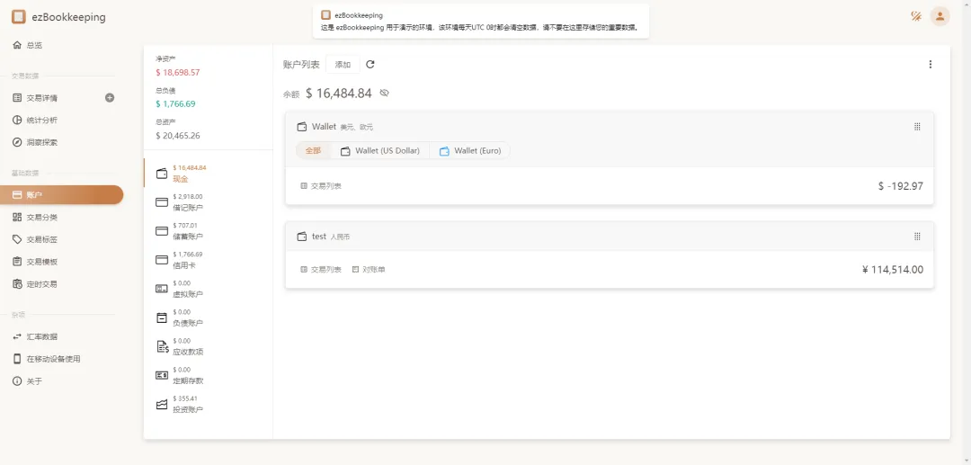 轻松自托管你的个人财务数据。这是一款免费、轻量、可自托管的个人记账应用,采用 Go+Vue 构建。它界面简洁易用、功能丰富,支持二级账户(个人/家庭)、收支分类、交易图片附件、定期收支自动记账等功能。借助 PWA 技术,可一键添加到手机主屏幕,体验媲美原生 App