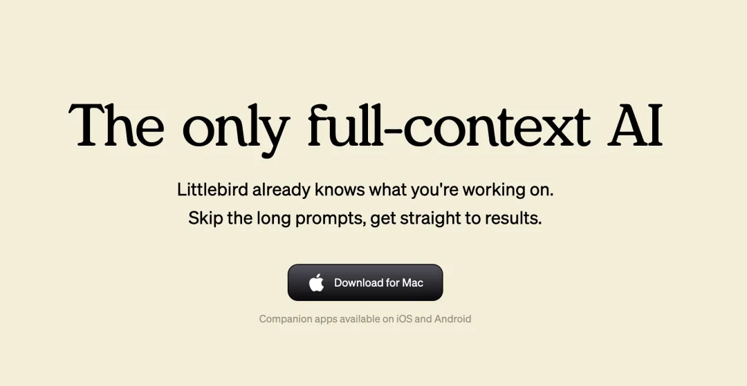 Littlebird的创始团队在思考这个问题时有一个关键洞察:AI模型本身其实很强大,限制它们效用的不是模型能力,而是缺乏关于用户的数据。大语言模型对你一无所知,这从根本上限制了它们的实用性。这个观点听起来简单,但却直指问题核心。我们一直在讨论如何让模型更聪明,却忽略了一个更基本的问题:如何让模型了解用户。