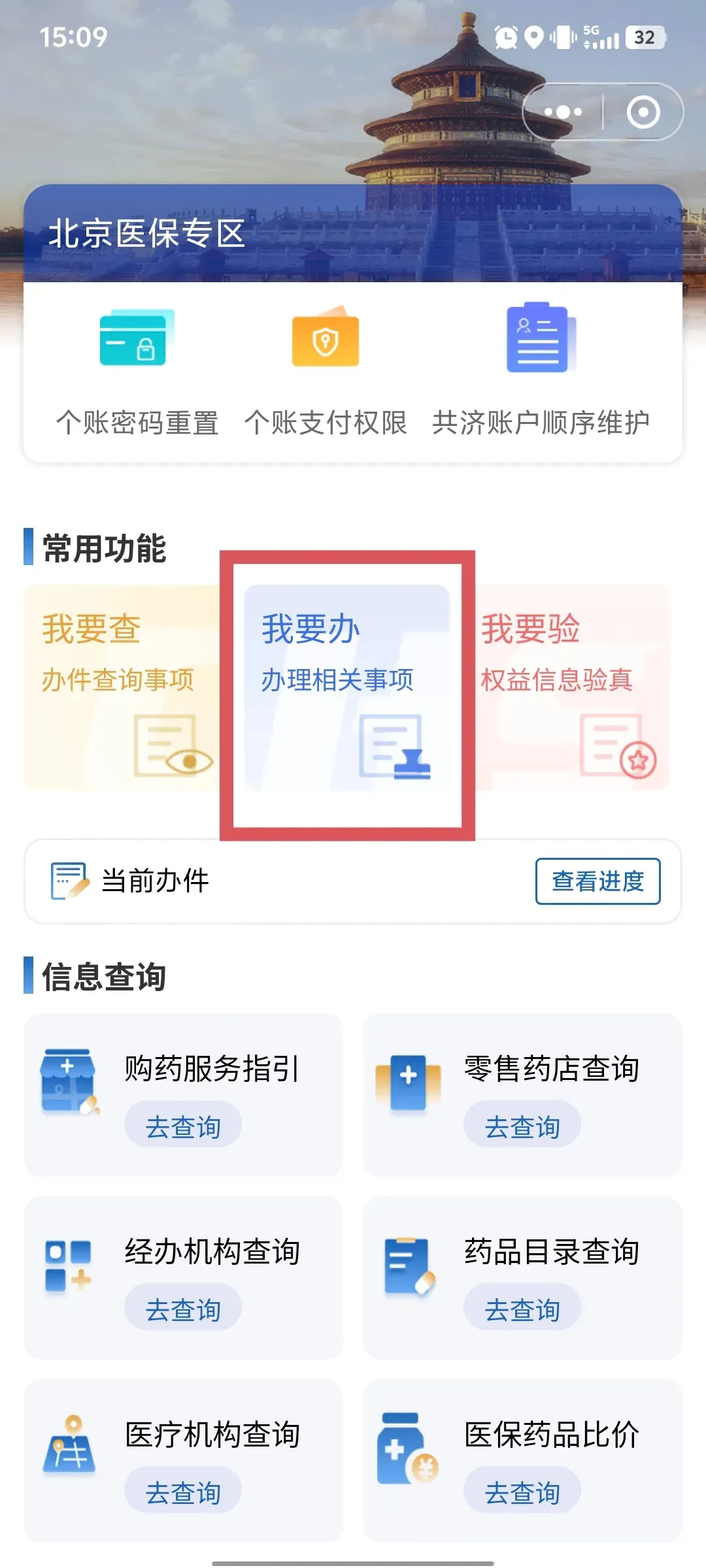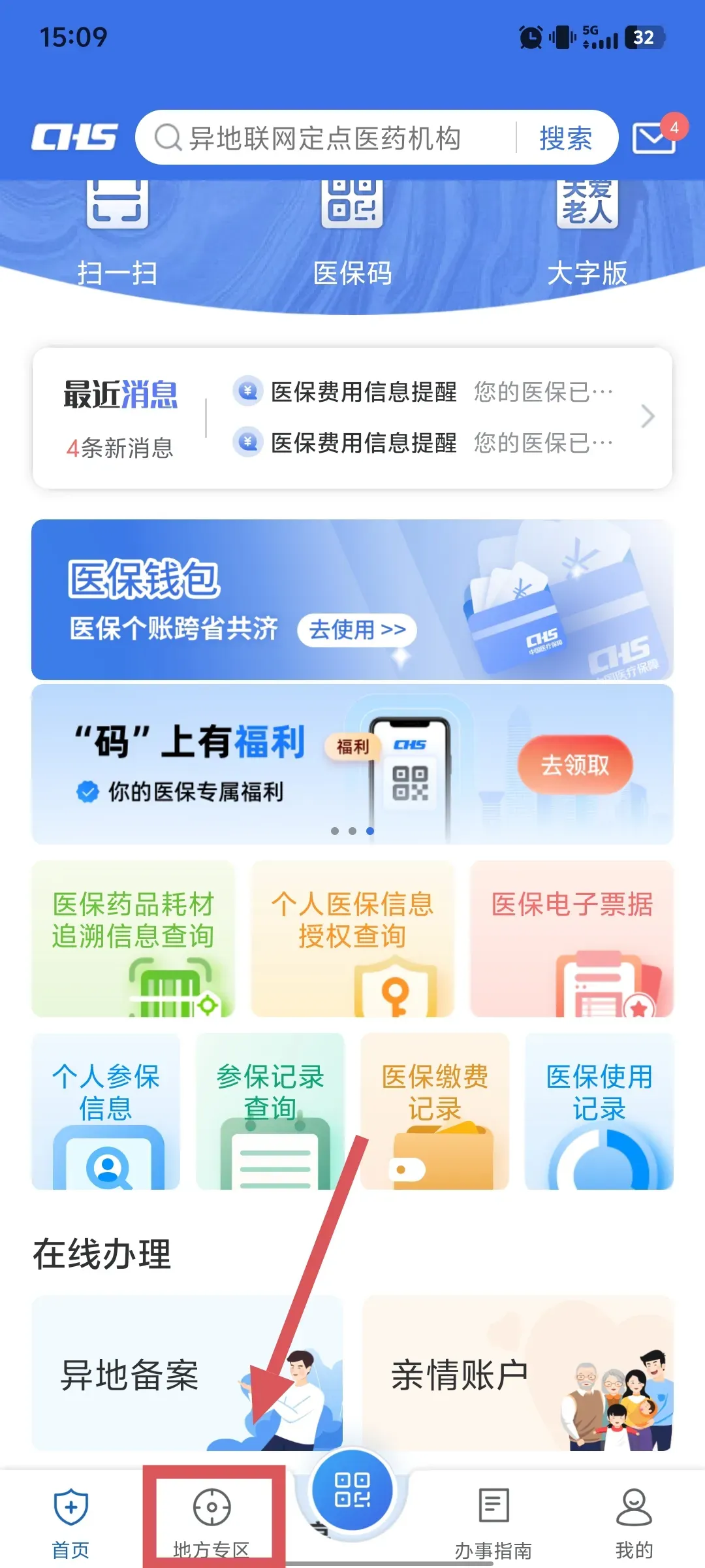 登录“国家医保服务平台APP”,进入“北京地方专区”界面;