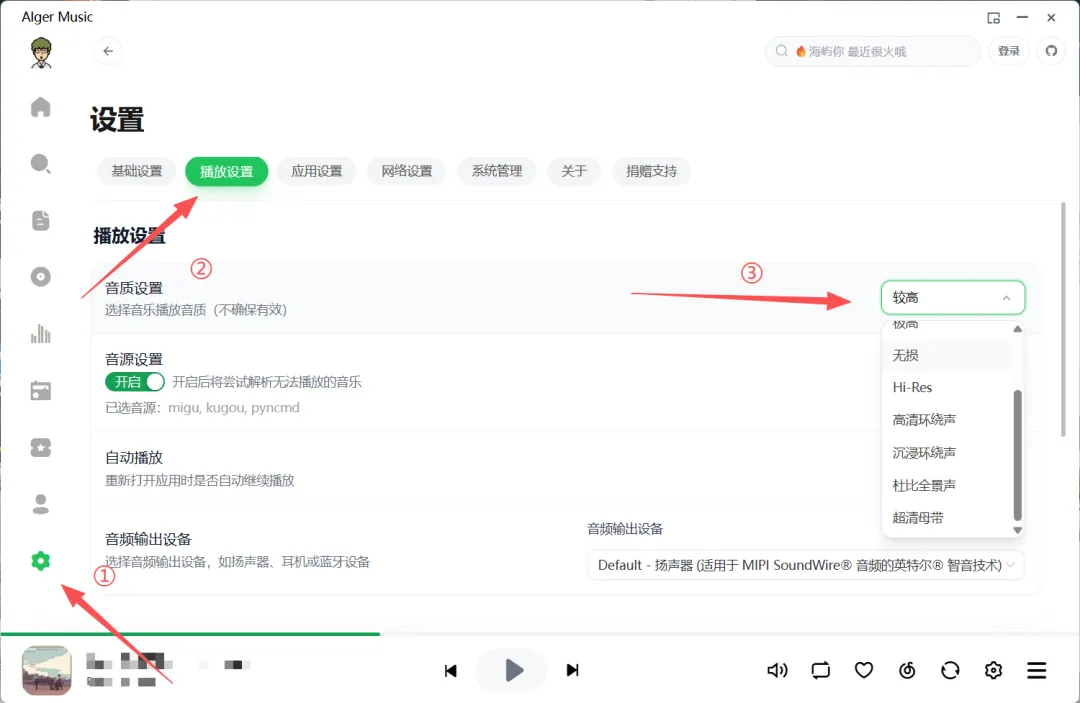 听愔乐前注意先将音质调高,享受其独特的超清母带音质