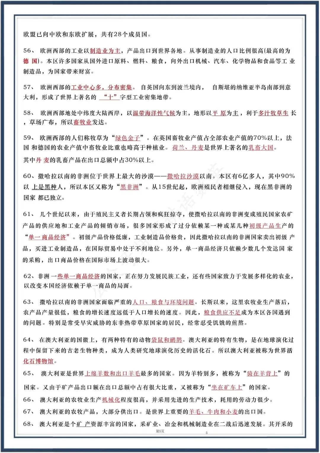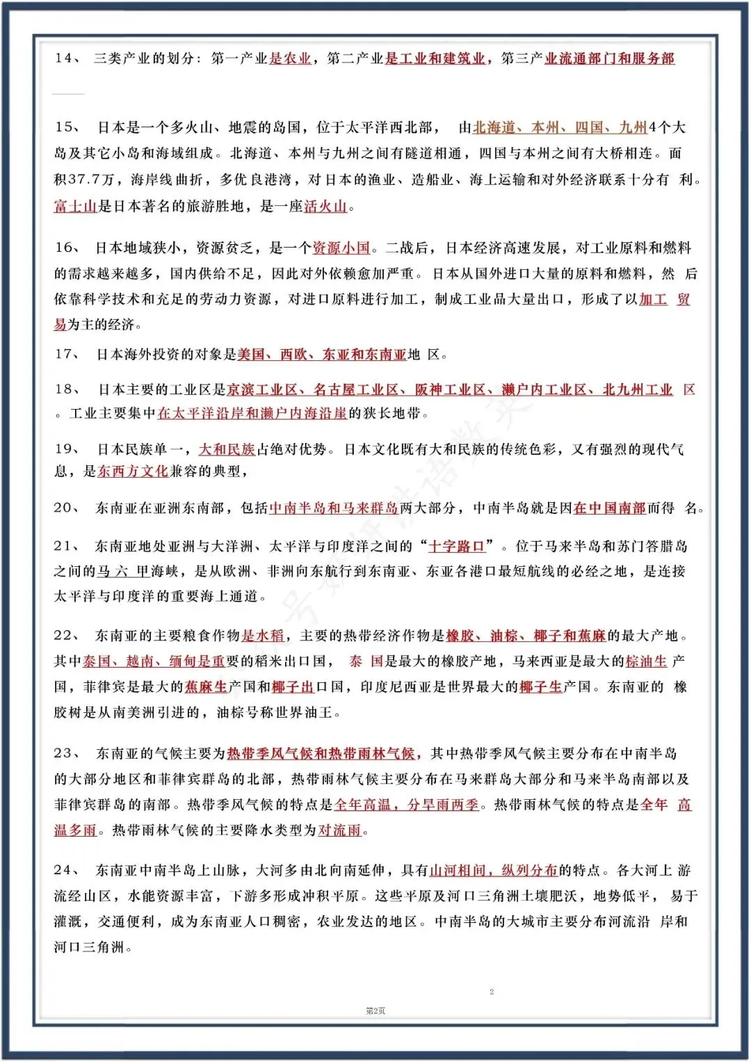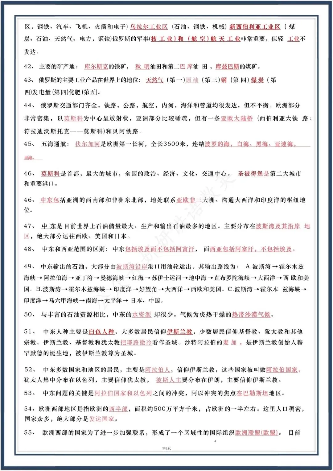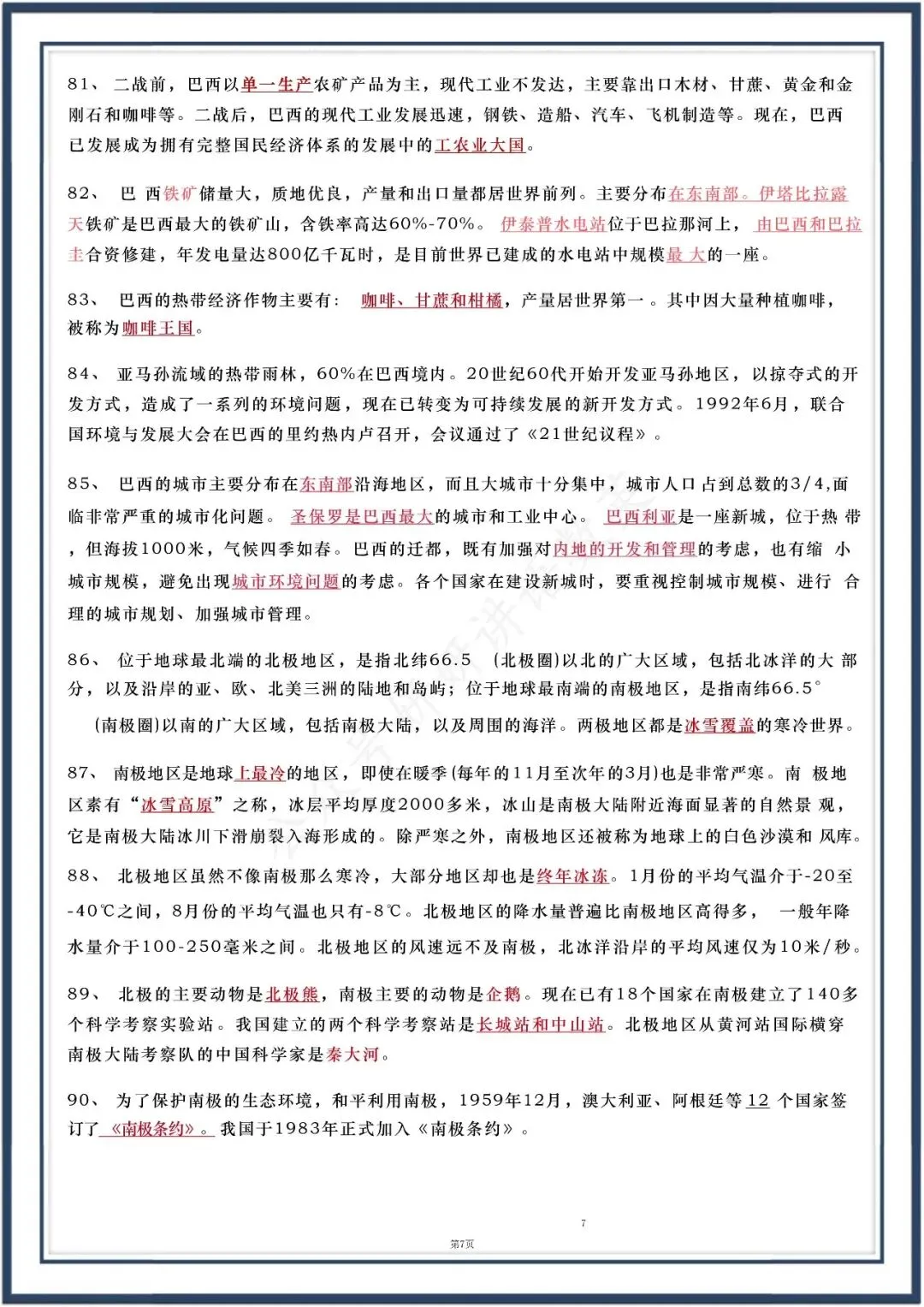 人教版七下地理:90 个核心知识点,可直接打印,电子版可打印!