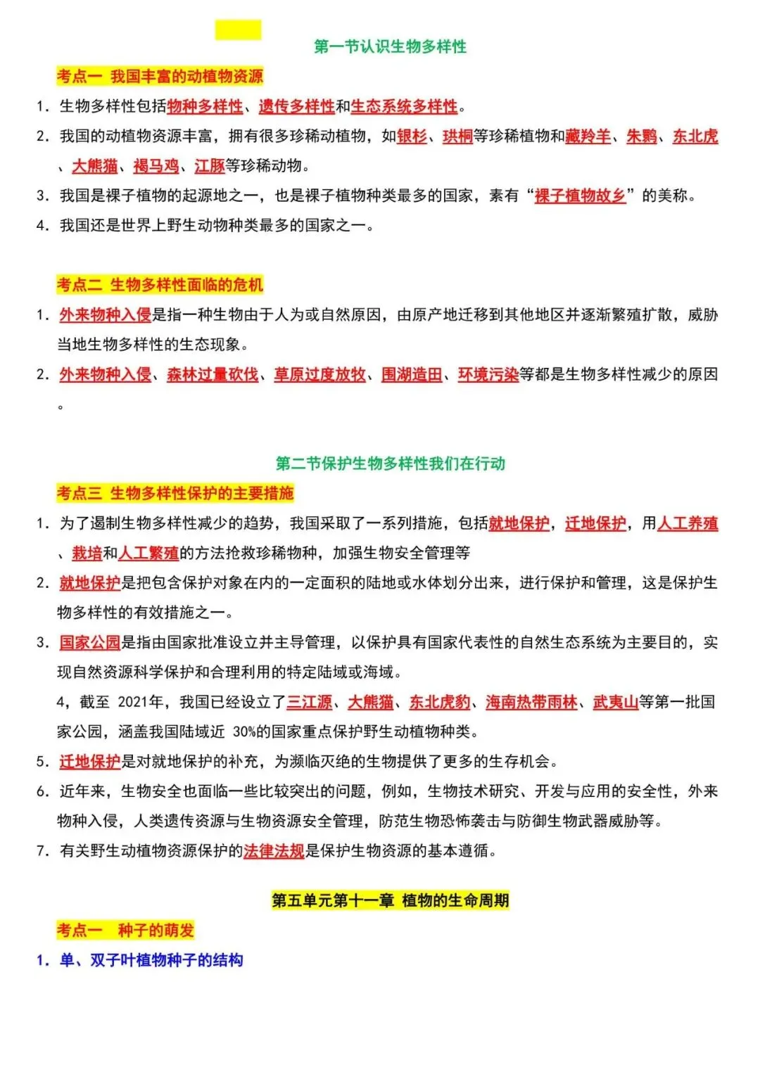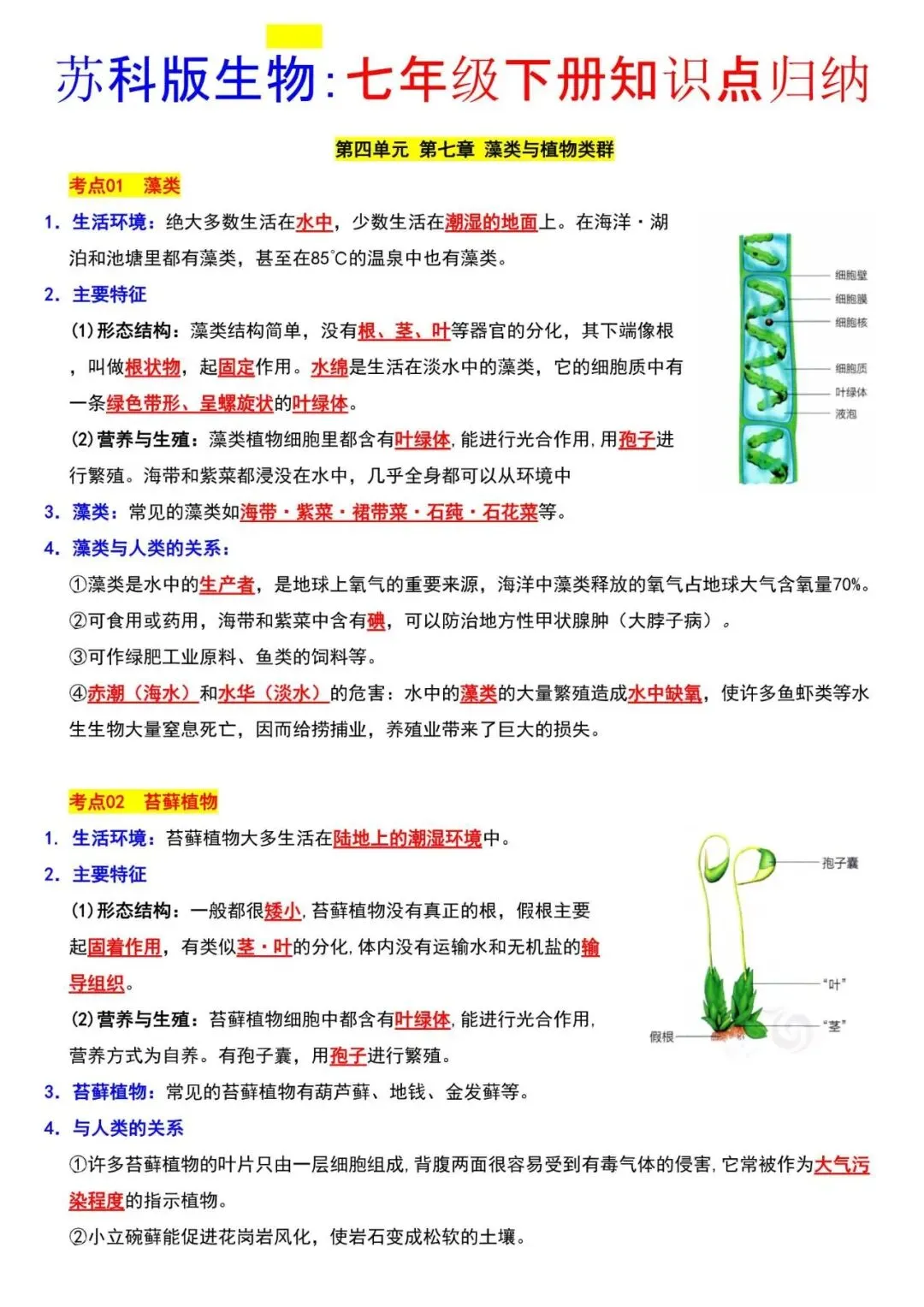今天老师给大家整理了:七年级下册生物(苏科版)必背考点,可打印背诵,电子版可打印!