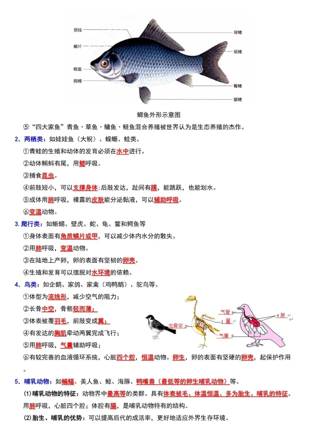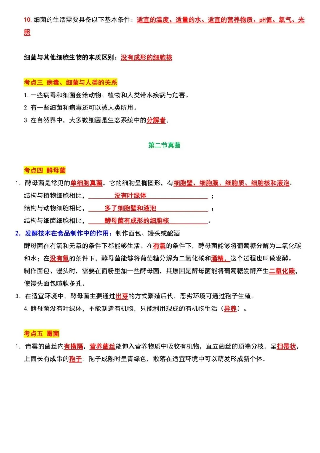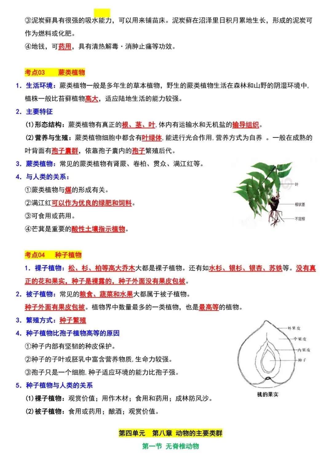 七年级下册生物(苏科版)必背考点,可打印背诵