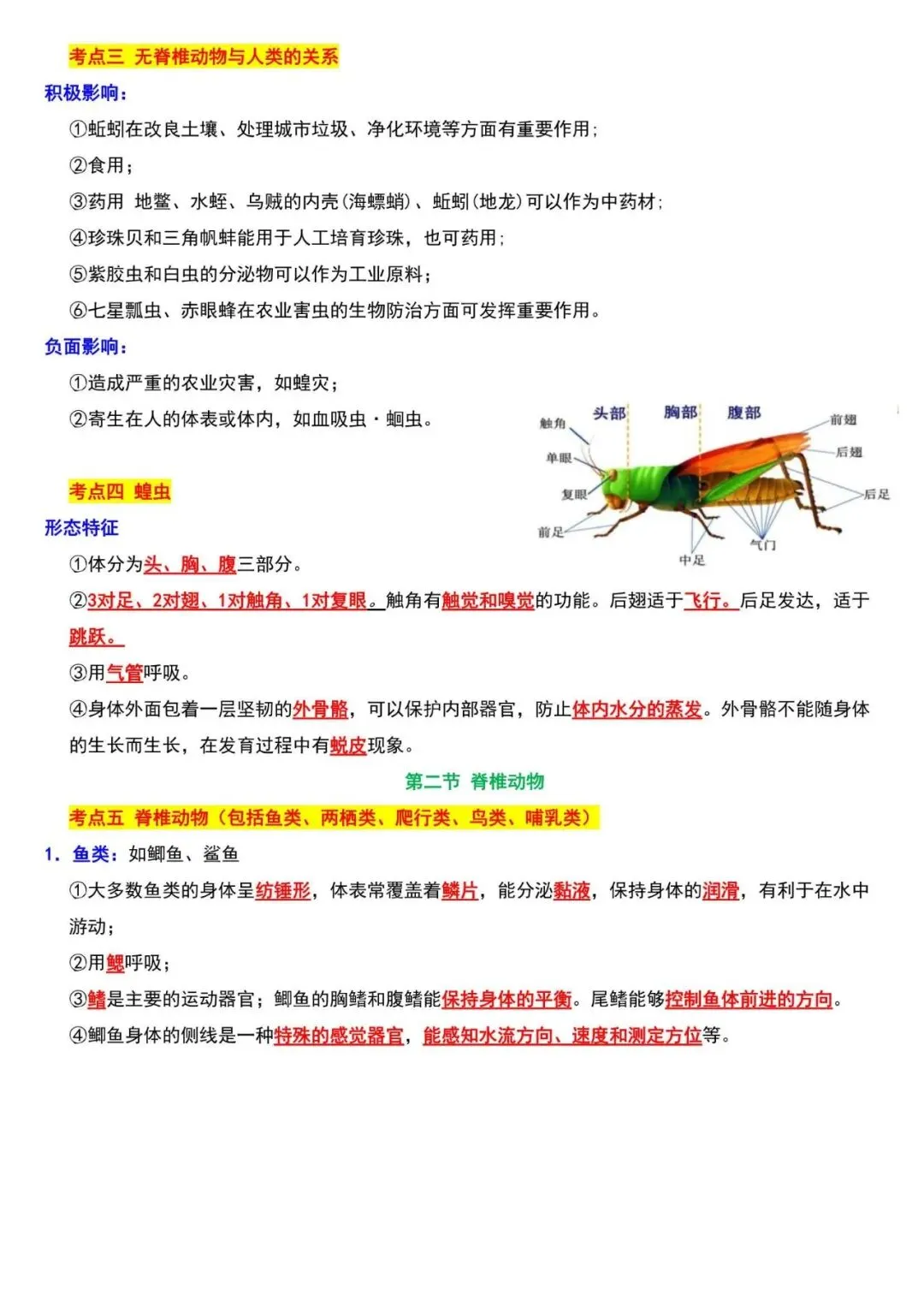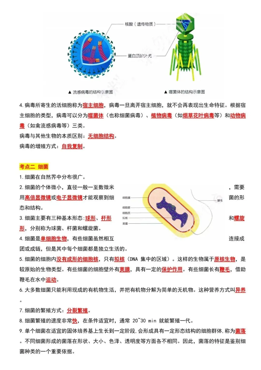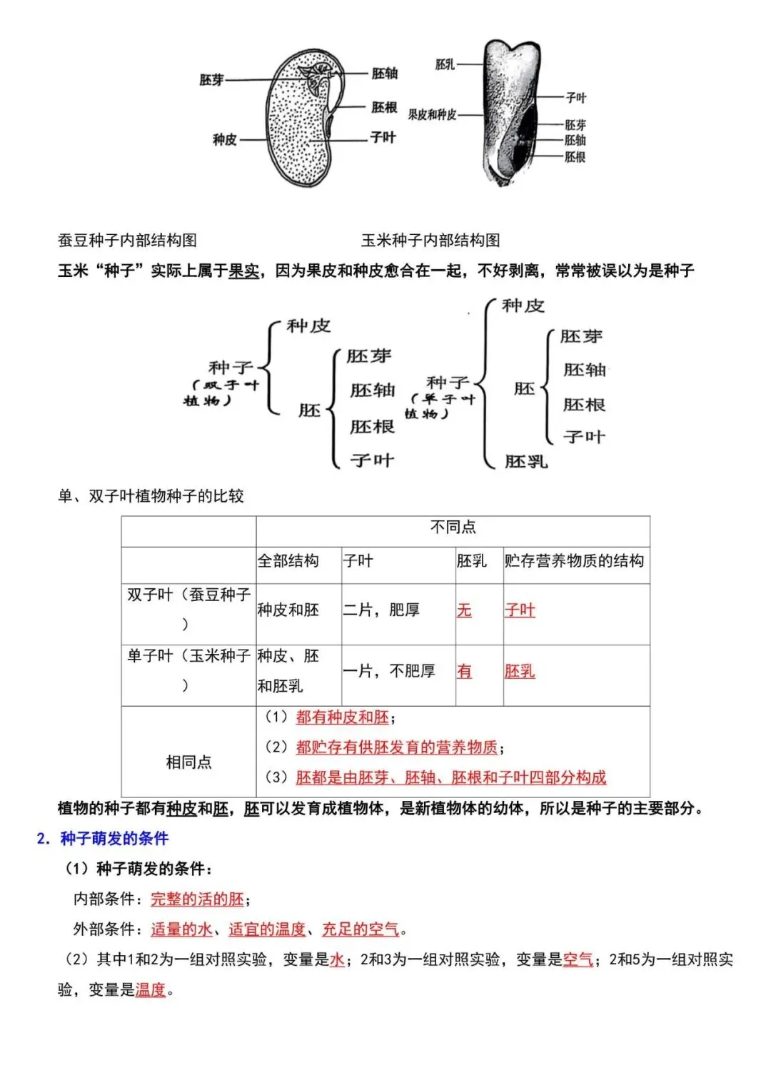 七年级下册生物(苏科版)必背考点,可打印背诵