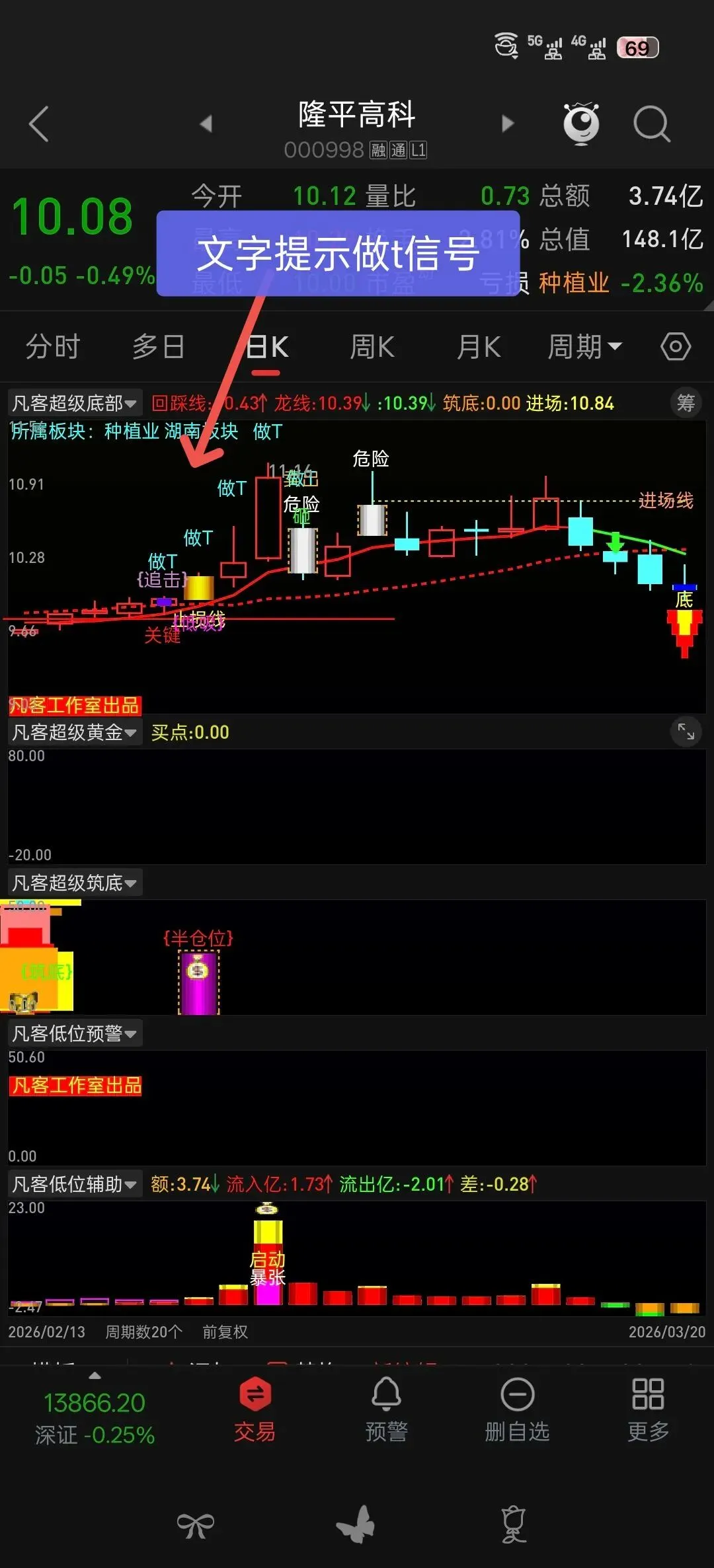DRAWTEXT(CROSS(K,D) AND MA(CLOSE,5)<CLOSE AND SJTJ,D,’波段做多’),COLORRED;