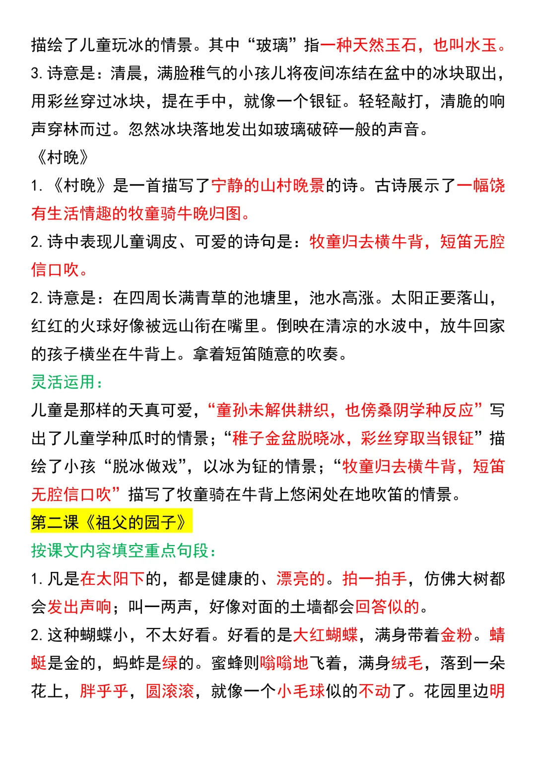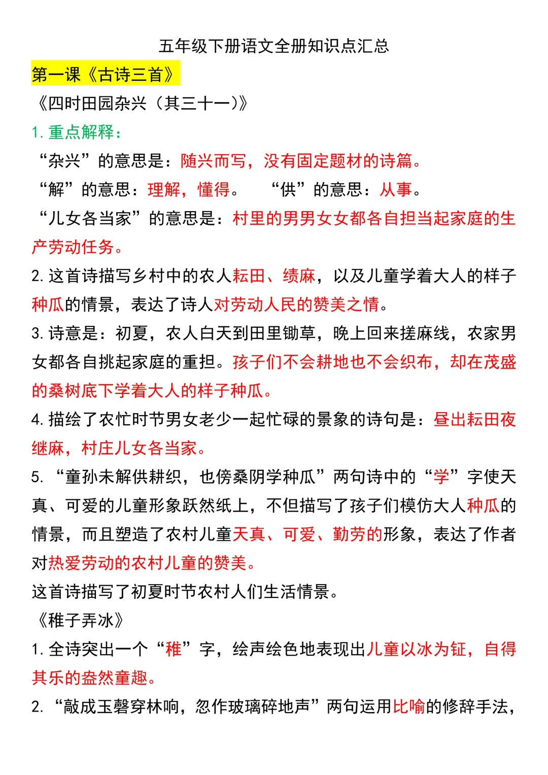 五年级下册语文课文知识点汇总(电子版可打印)