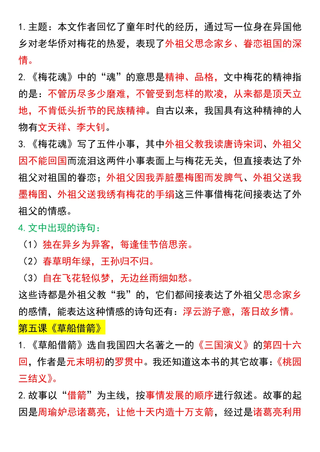 今天为大家分享:五年级下册语文的核心考点,聚焦 “经典文本精读” 与 “四大名著导读” 两大模块 —— 从《祖父的园子》《月是故乡明》的童年与乡愁主题,到《梅花魂》的民族精神,再到《猴王出世》《草船借箭》等名著片段,每篇课文都紧扣 “情感表达” 与 “文化传承”,既是单元检测的高频考点,也是提升文学素养的关键内容。