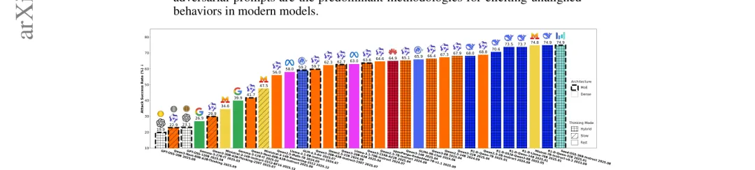 ●后训练和知识蒸馏可能系统性地损害安全对齐能力;角色扮演、提示注入和基于梯度的对抗提示搜索是最主要的越狱方法论;与常规认知相反,单纯扩大模型规模并不能线性改善安全性——研究建议将安全性作为后训练阶段的显式约束目标,而非附属于能力优化的次要考量。