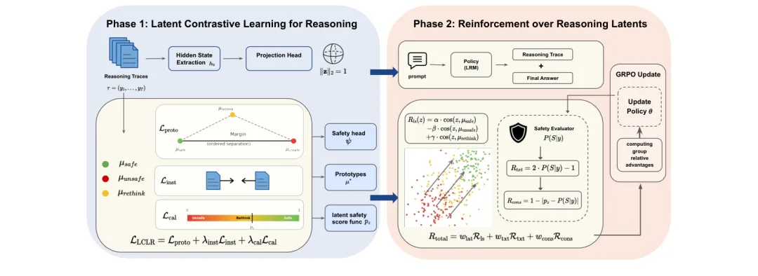 ●CRAFT 识别并解决了「表面安全对齐」(SSA)问题:大推理模型常在内部推理链中包含有害内容(如毒性思考步骤),最终输出却是安全拒绝——这种内部风险对依赖链式推理的模型构成独特威胁。CRAFT 通过在隐表示空间同时优化推理链安全性和最终输出安全性来根本解决这一问题。