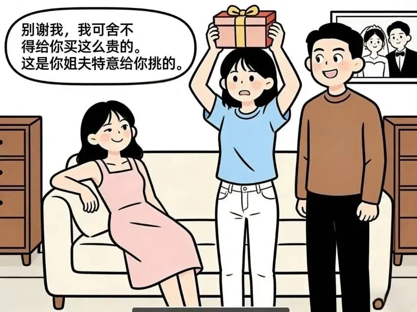 趣味漫画: 老公:媳妇我给你买了件内衣!老婆:这尺码太小了,我穿不了,送给妹妹吧.妹妹:姐姐你对我太好了吧!老婆:这可是你姐夫买的 老公神神秘秘递来一件包装精致的新款蕾丝内衣 老婆捏了捏尺码,皱着眉摇摇头,转头喊来妹妹 妹妹接过礼物眼睛瞬间亮了,捧着内衣满脸惊喜感激 姐姐慢悠悠补刀,一句话戳破真相 一屋子人瞬间齐刷刷看向姐夫,姐夫脸刷地红到耳根