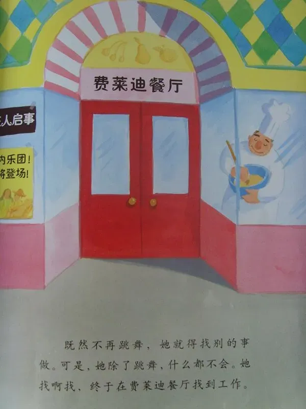 既然不再跳舞,她就得找别的事做,可是,她除了跳舞,什么都不会。她找啊找,终于在费莱迪餐厅找到工作。