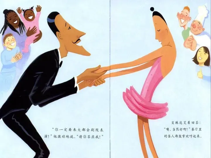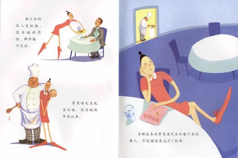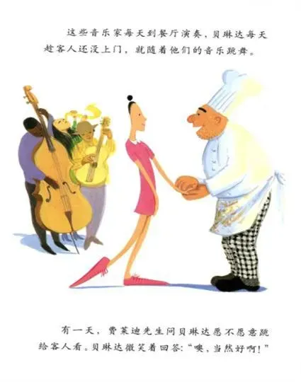 餐厅里的客人喜欢她,因为她动作快,脚步轻巧、零活。费莱迪先生也喜欢她,因为她做事很认真。贝琳达喜欢费莱迪先生和餐厅里的客人,不过她还是忘不了跳舞。