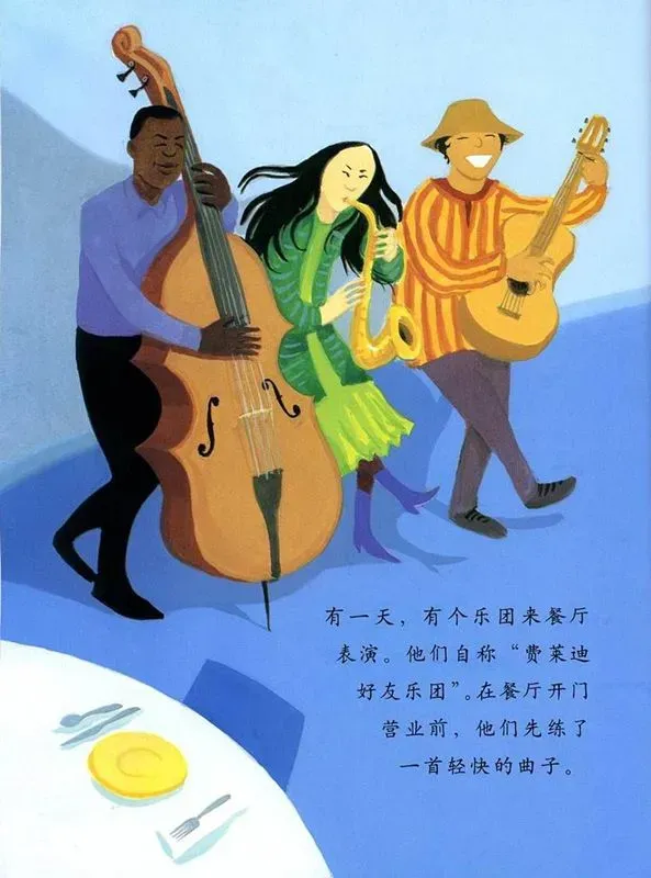 有一天,有个乐团来餐厅表演,他们自称“费莱迪好友乐团”,在餐厅开门营业前,他们先练了一首轻快的曲子。
