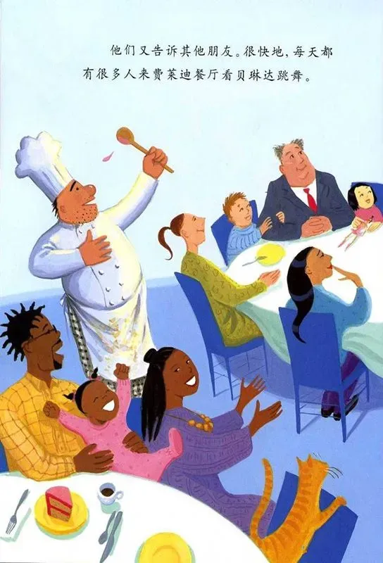 他们又告诉其他朋友,很快的,每天都有很多人来费莱迪餐厅看贝琳达跳舞。